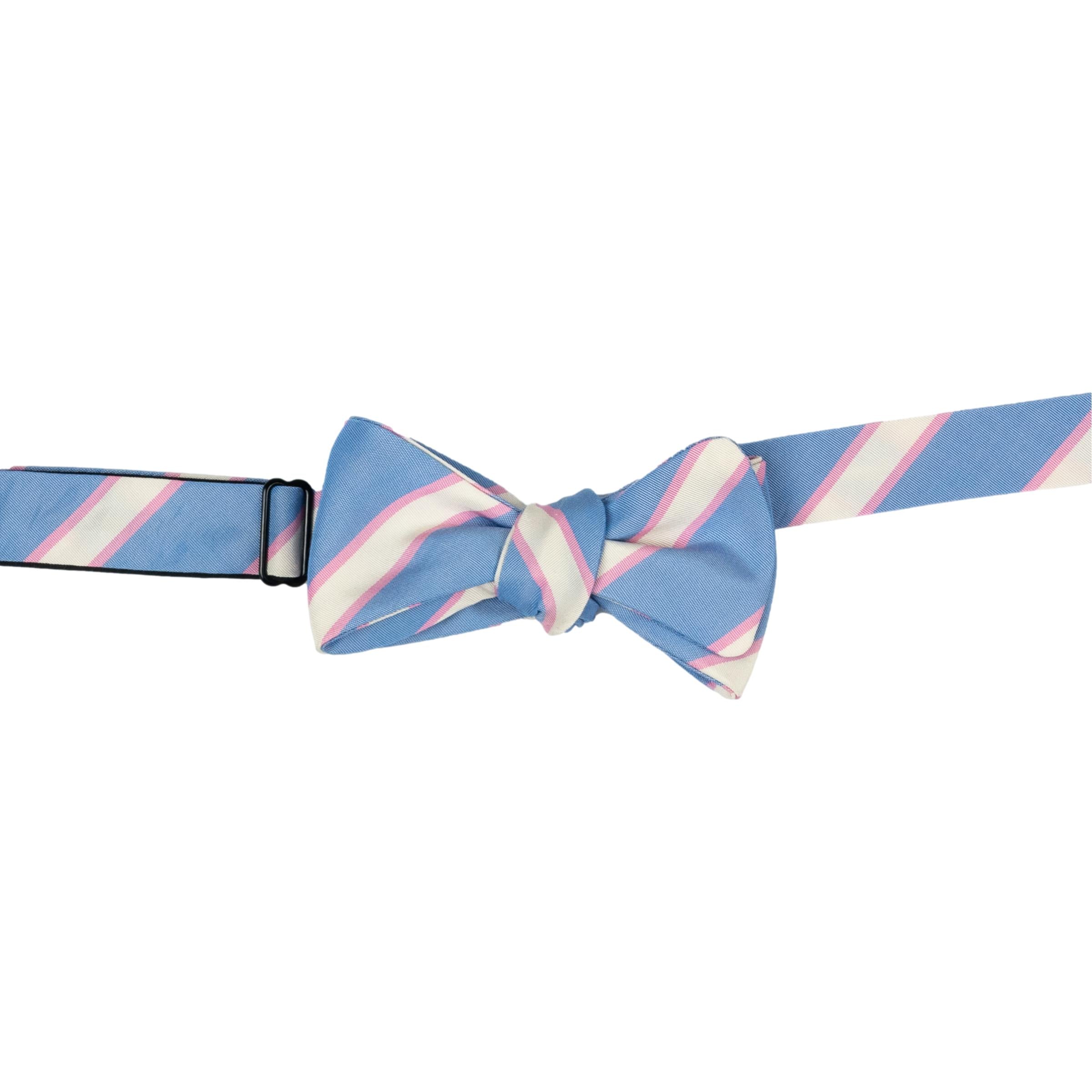 Light Blue, White, and Pink Repp Stripe Silk Bow Tie