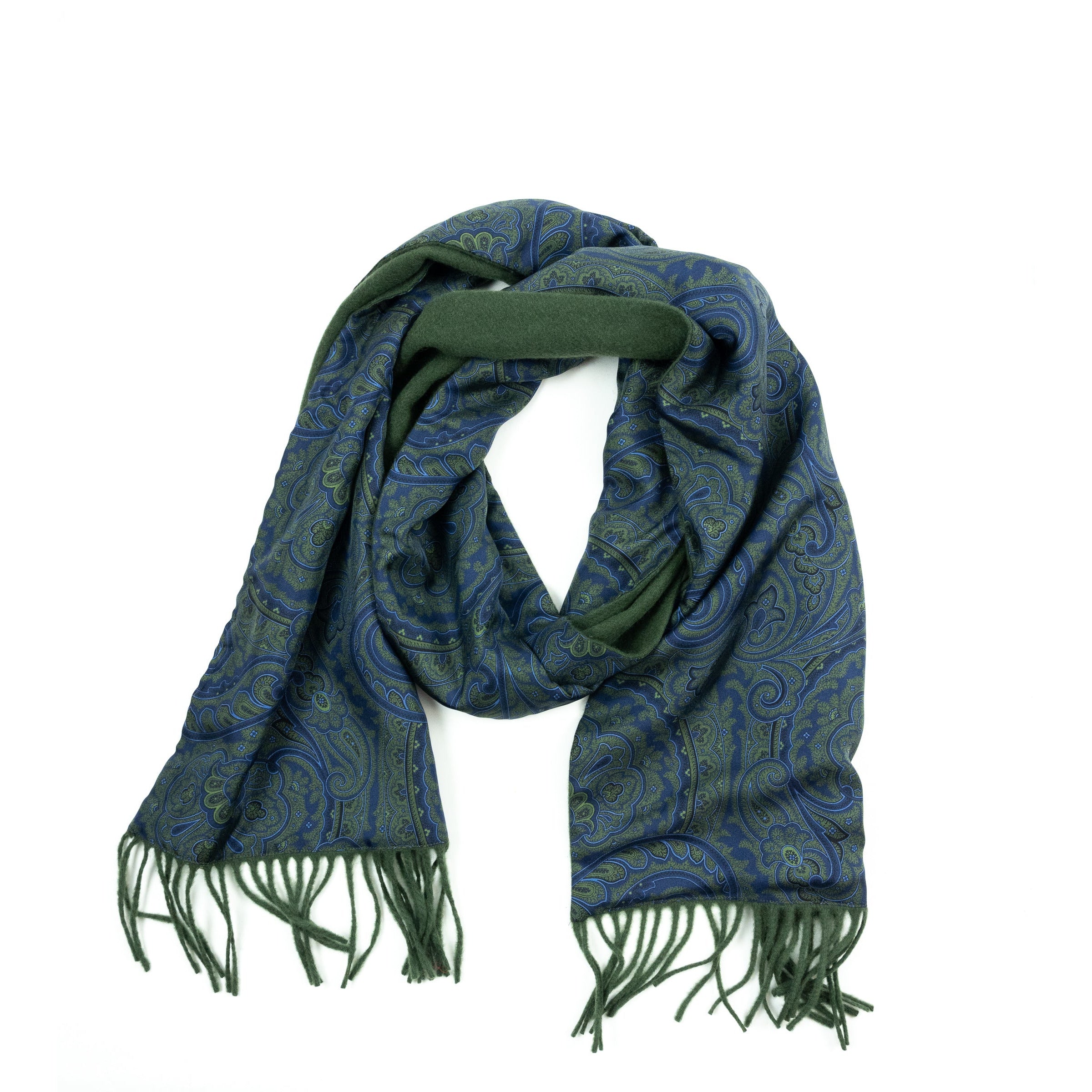 Navy and Green Paisley Cashmere and Silk Scarf