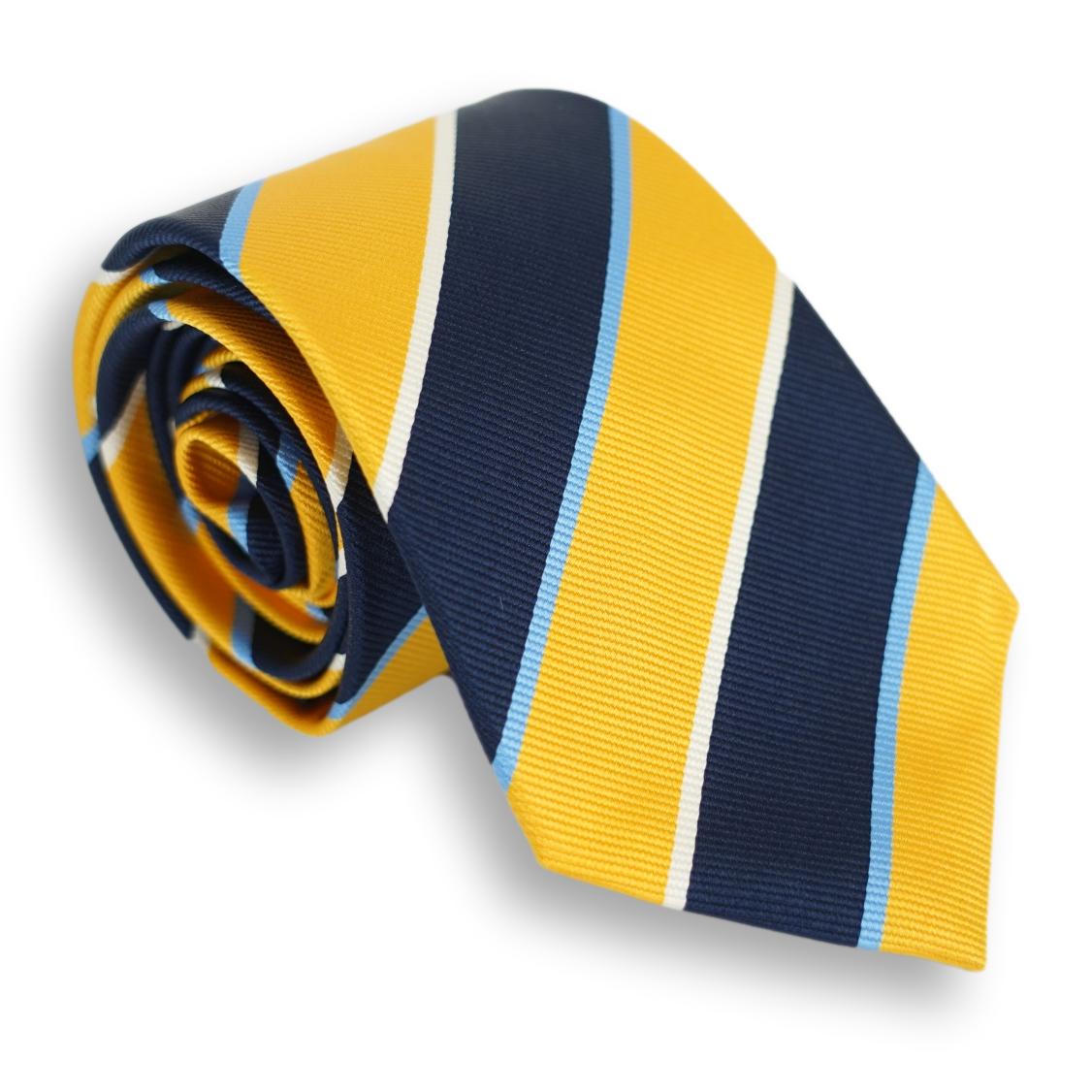 Navy, Gold, and Red Repp Stripe Silk Tie