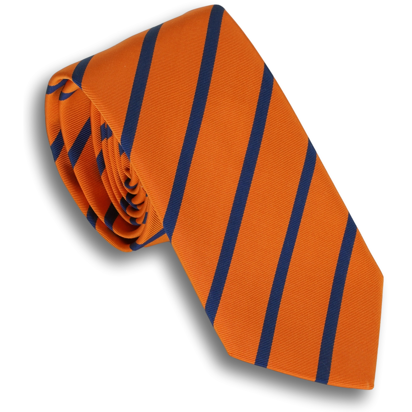 Orange and White/Navy Mogador Stripe Silk and Cotton Tie
