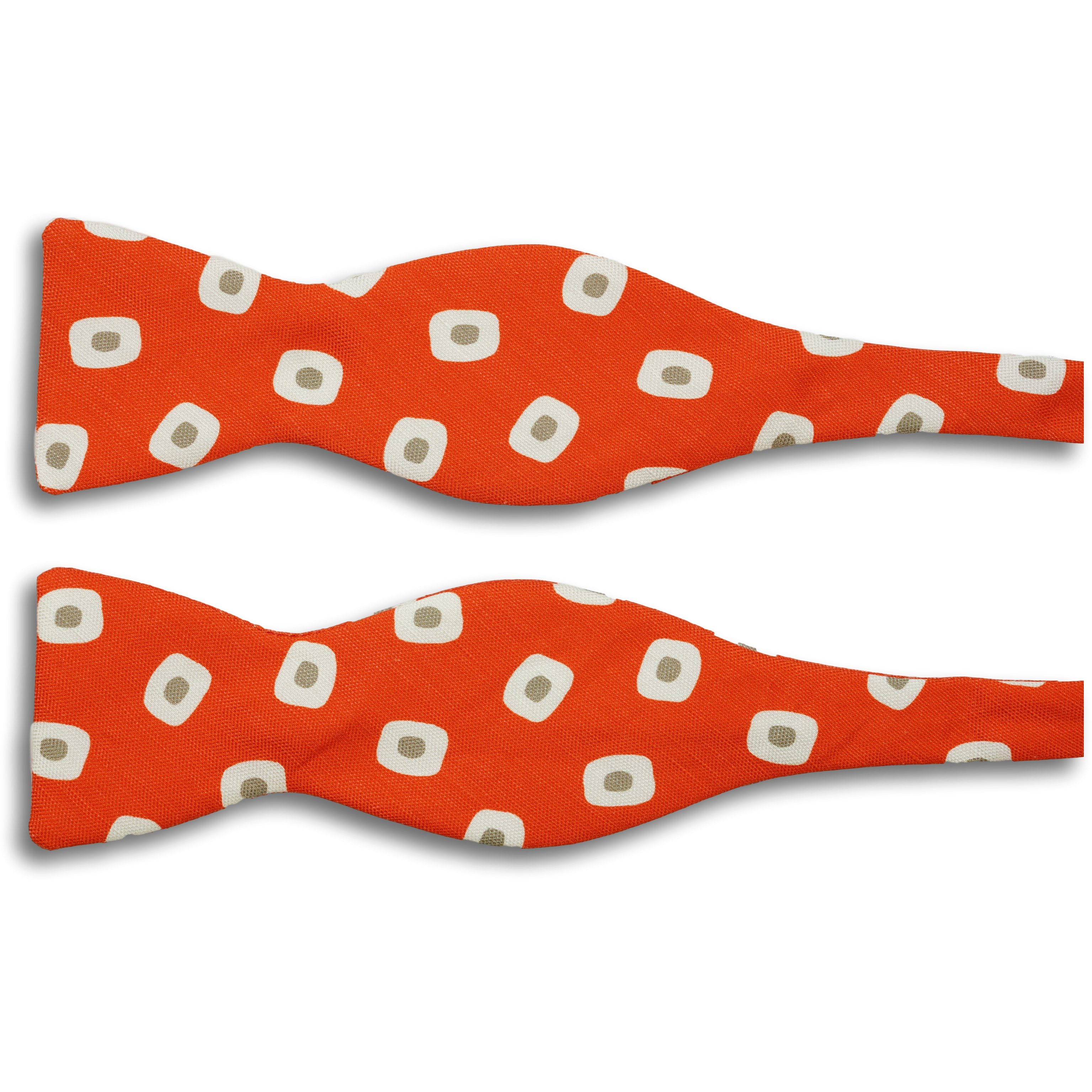 Orange Silk and Linen Abstract Butterfly Bow Tie