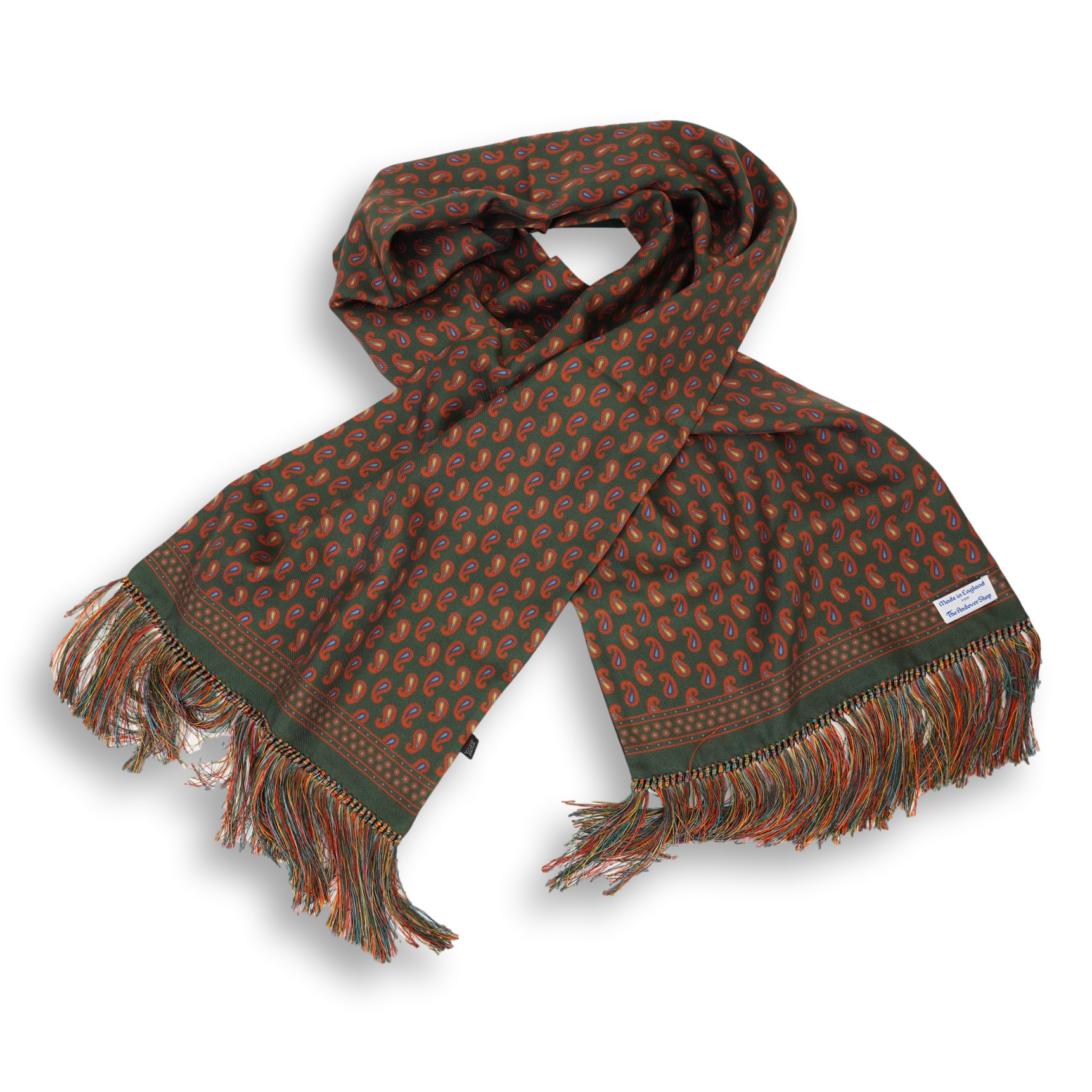 Olive with Multicolored Paisley Silk and Wool Blend Scarf