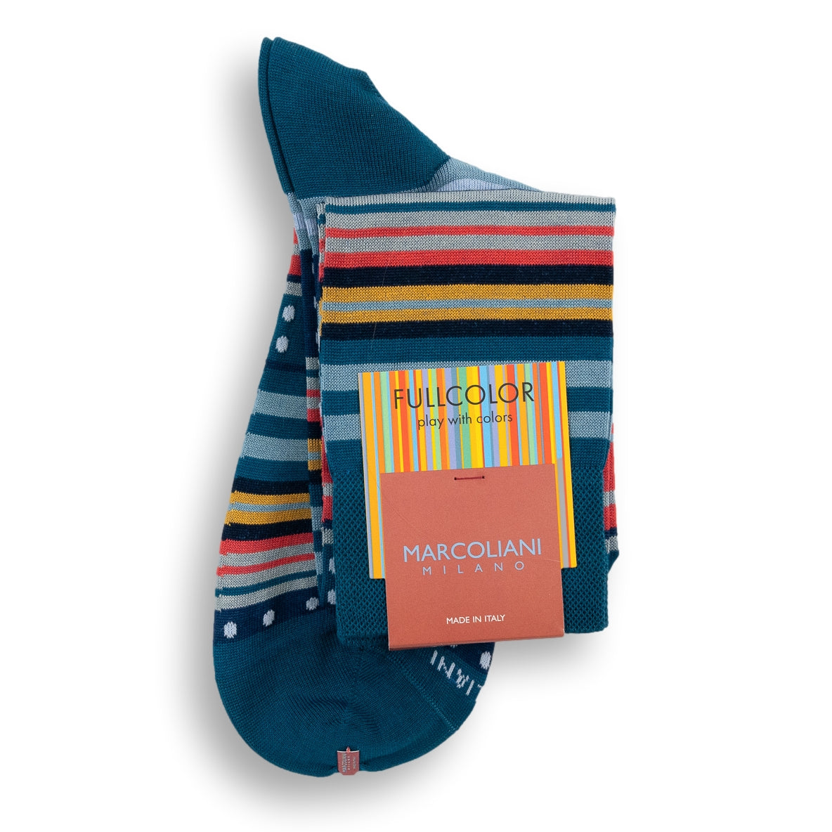 Pima Cotton Rainbow Stripe Mid-Calf Dress Socks