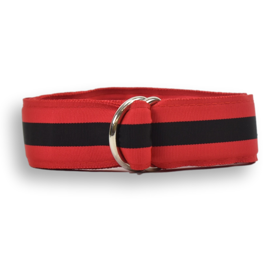 Red with White, Navy, and Caroline Blue Stripe Silk Bow Tie