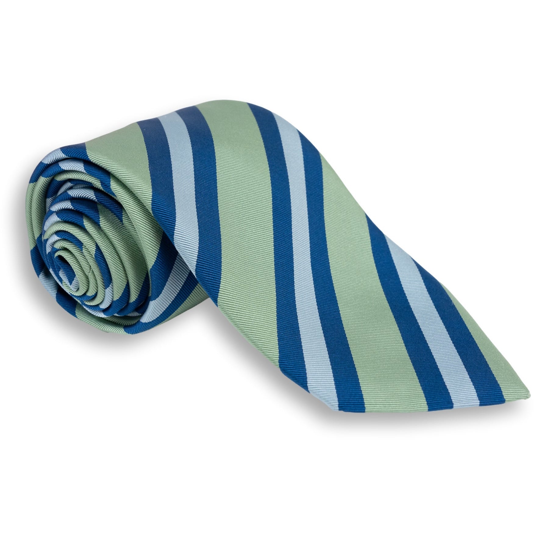Sage, Navy, and Light Blue Silk Repp Stripe Tie