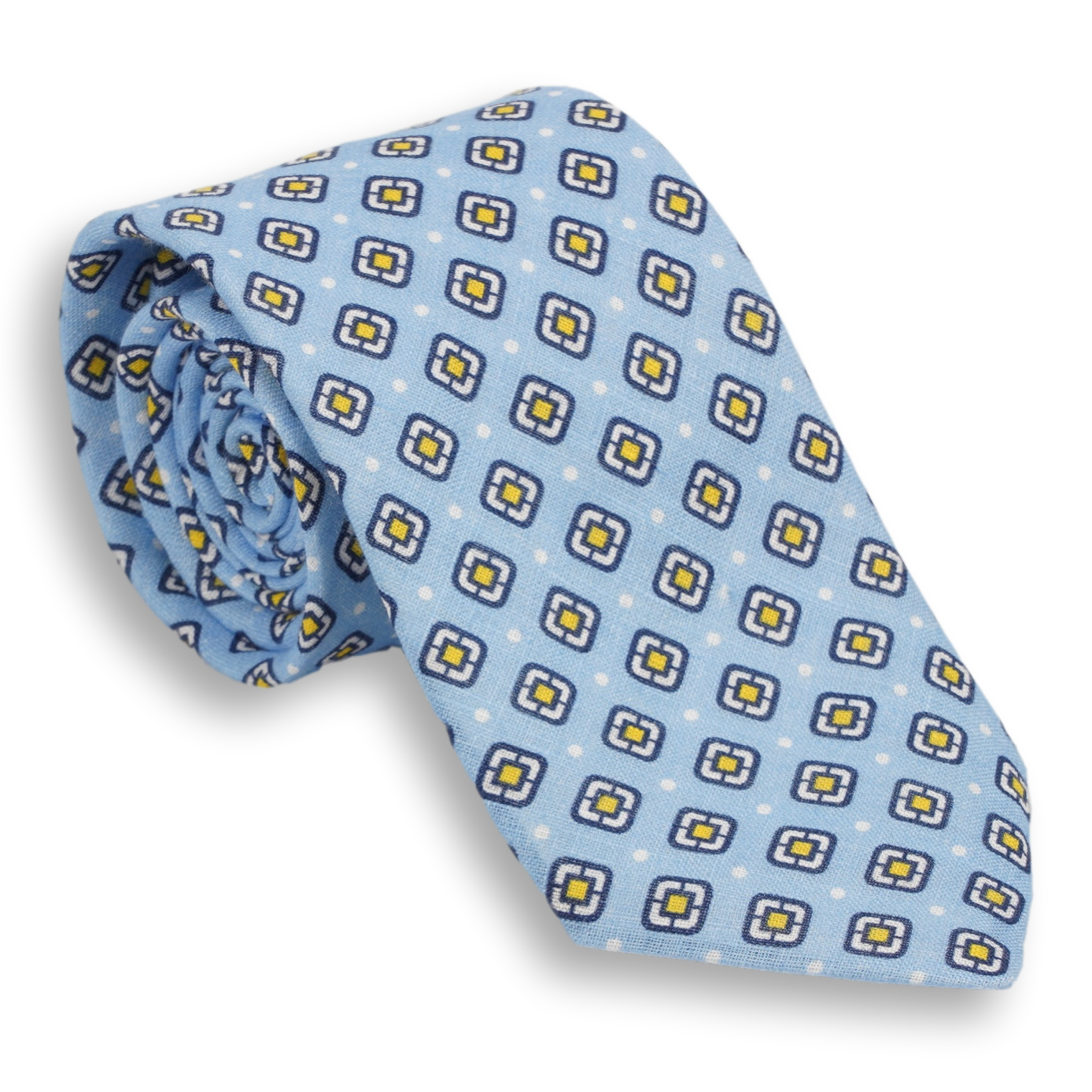 Silk and Linen Square in Square Pattern Butterfly Bow Tie