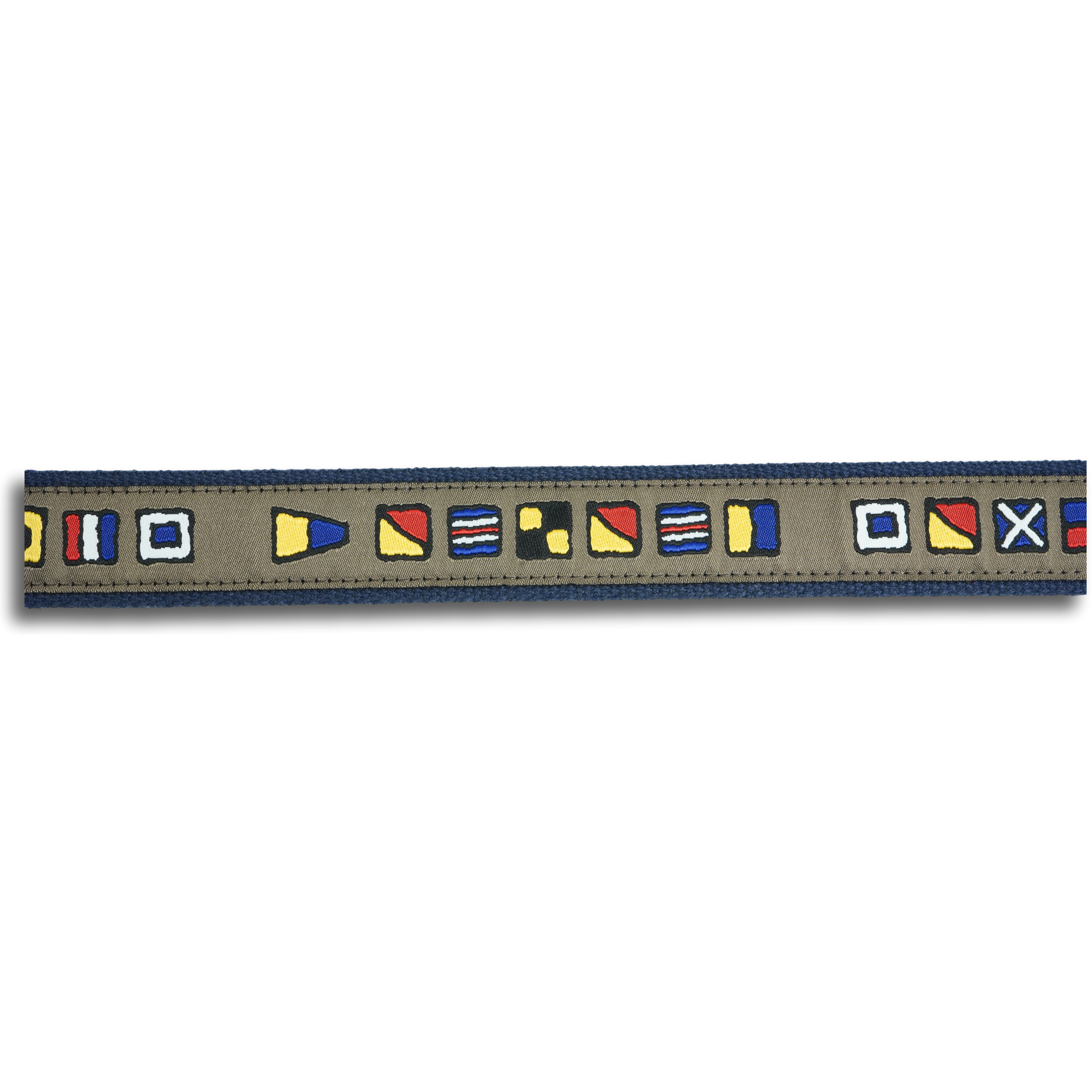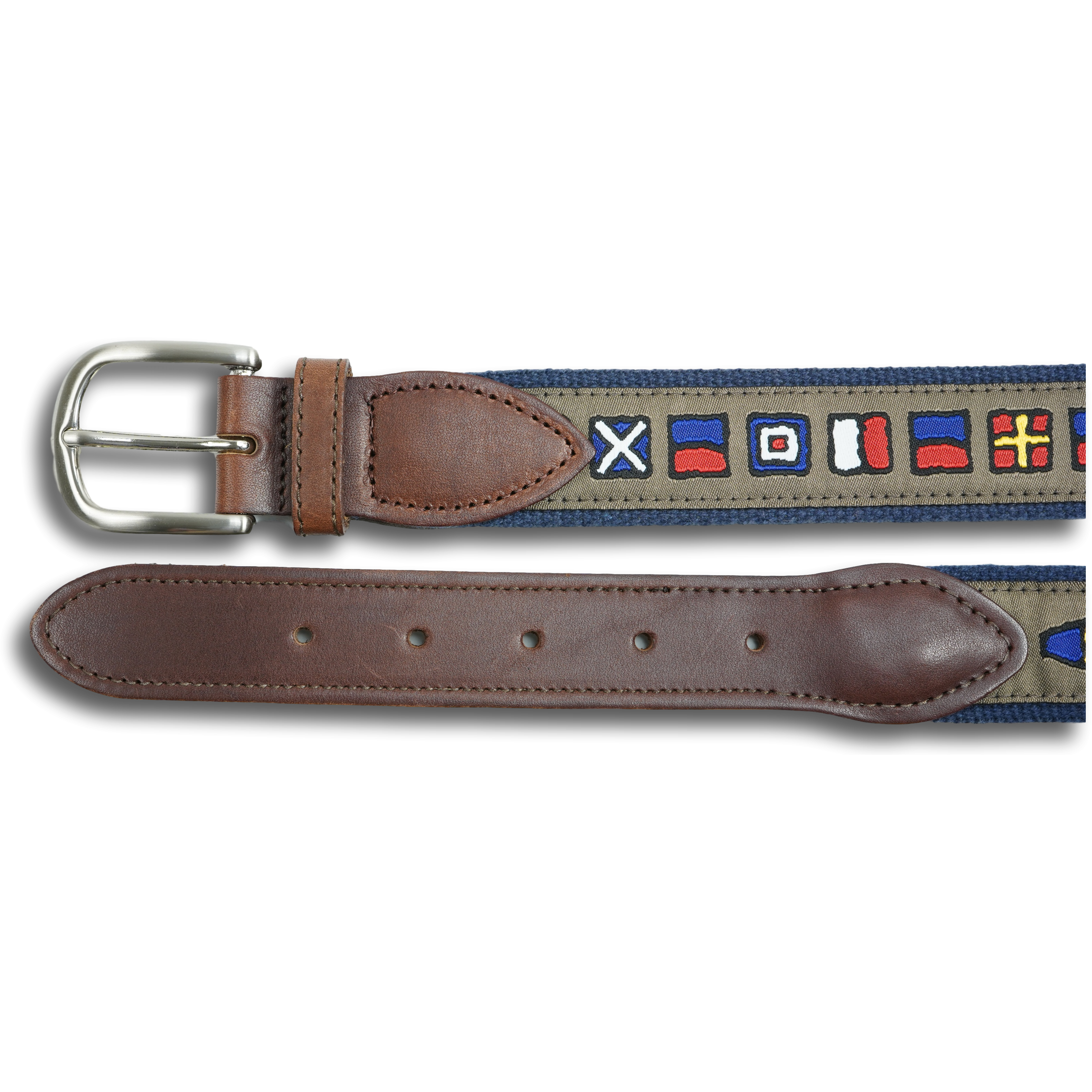 Each Ribbon Belt has an artist-designed signature ribbon stitched onto 100% cotton webbing and fully stitched leather tabs cut from full grain Latigo leather. Each leather tab belt is finished with solid cast brass buckles in a brushed silver finish. Proudly Made in Maine.