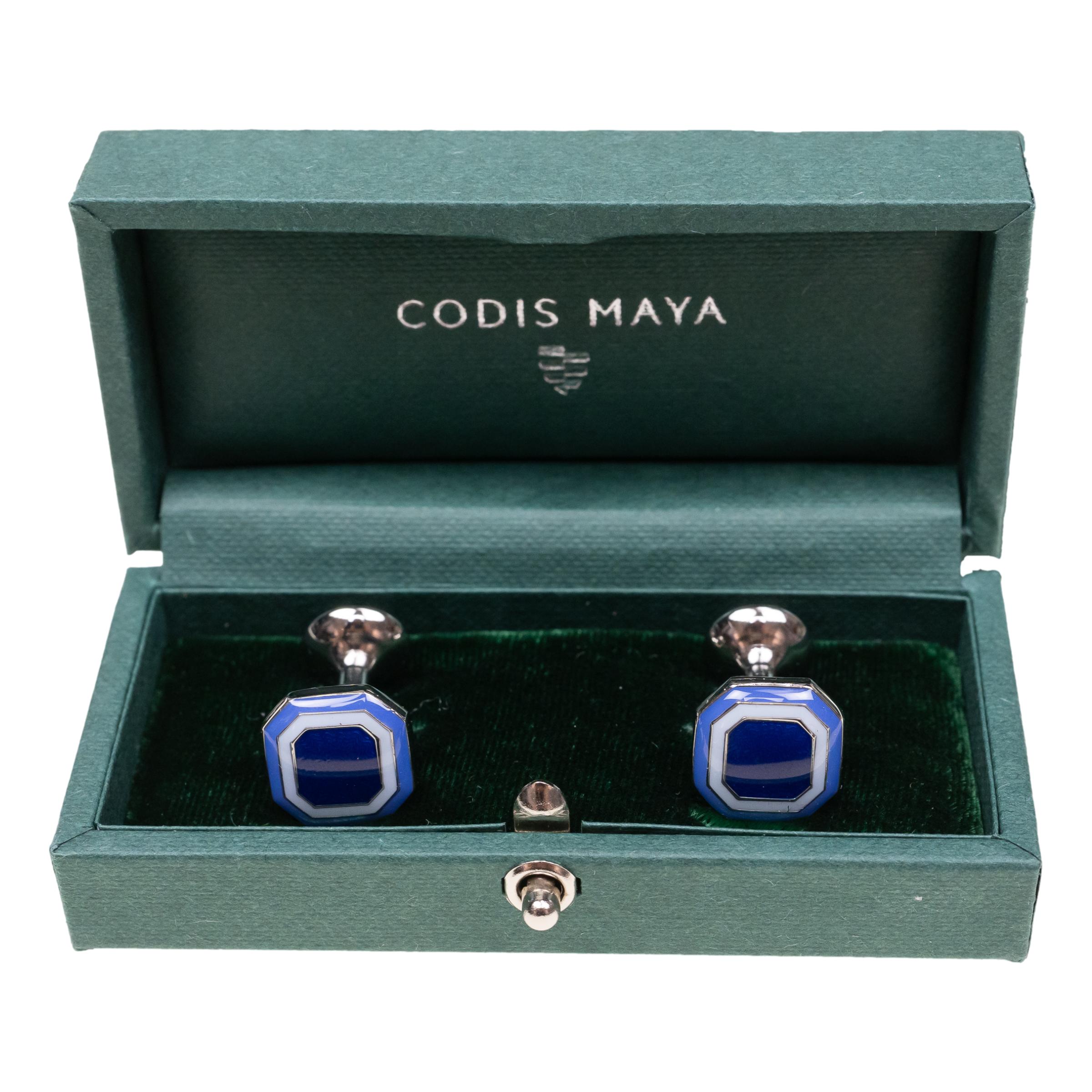 The distinct octagonal shape is banded with 3 colours of glass enamel and guilloche engraved in the centre.