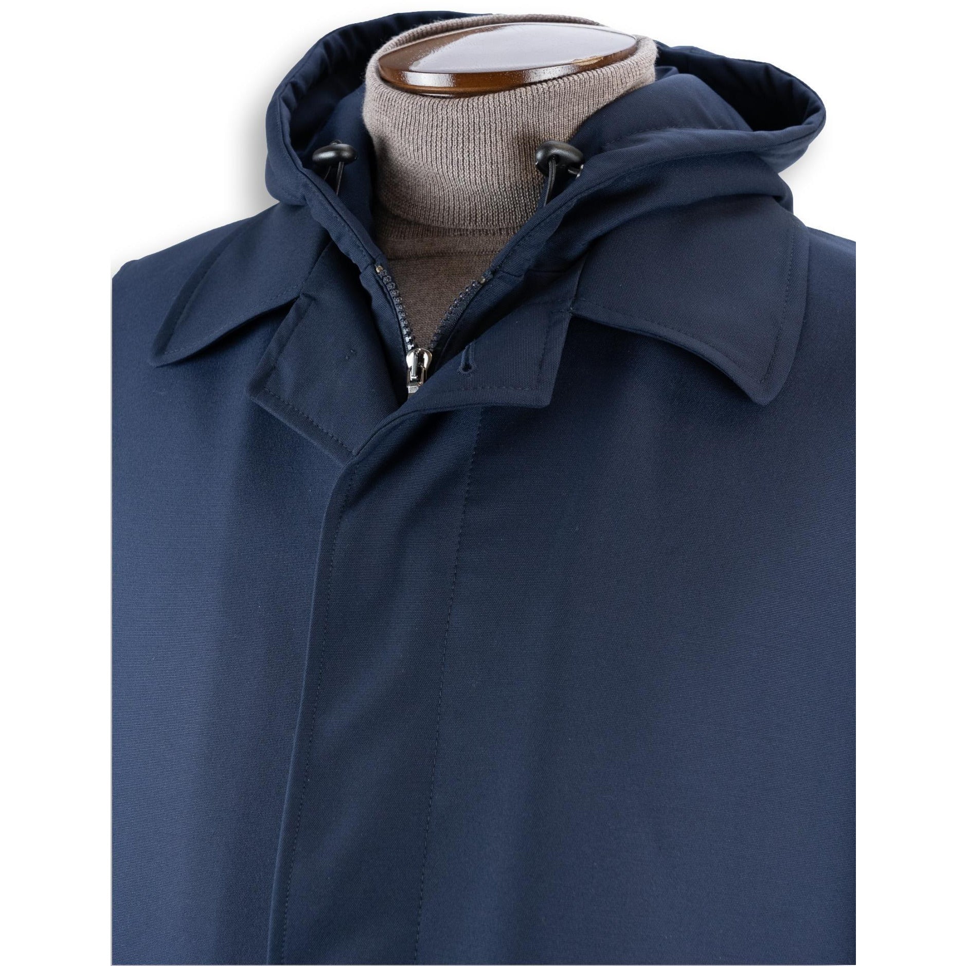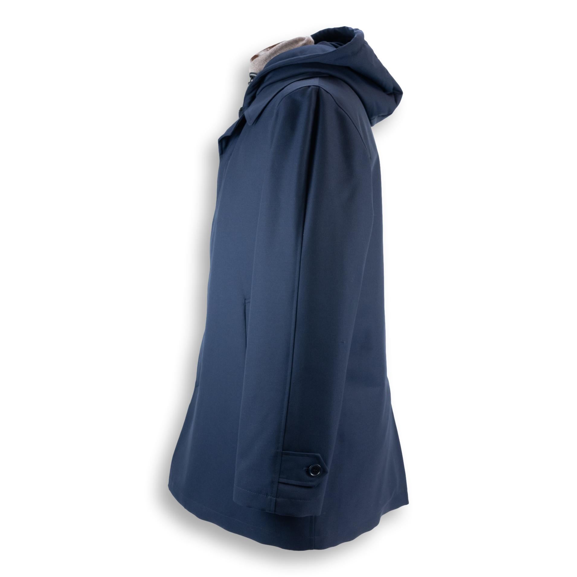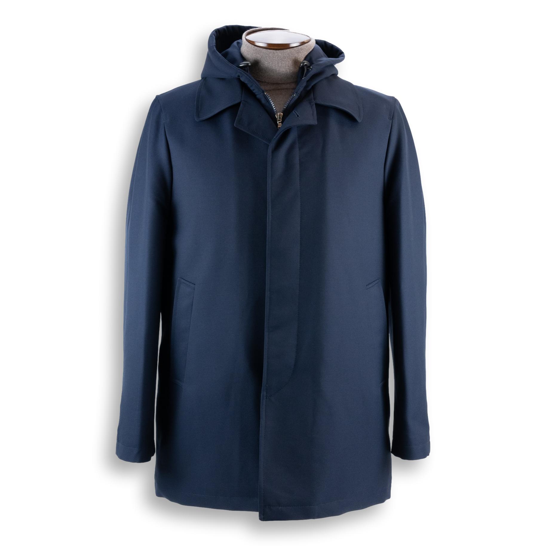 This casual or dressy 3/4 coat, made with the exclusive combination of wool and poly, treated with Green Storm System® for a waterproof, wind-resistant finish. Zip-in / zip-out hood, two hip pockets, fly front, two internal pockets. Lined with 100% viscous for superior comfort. Supremely versatile outerwear that is light-weight and crease-resistant: ideal for leisure time and travel. Made in Italy for The Andover Shop. Dry clean only.