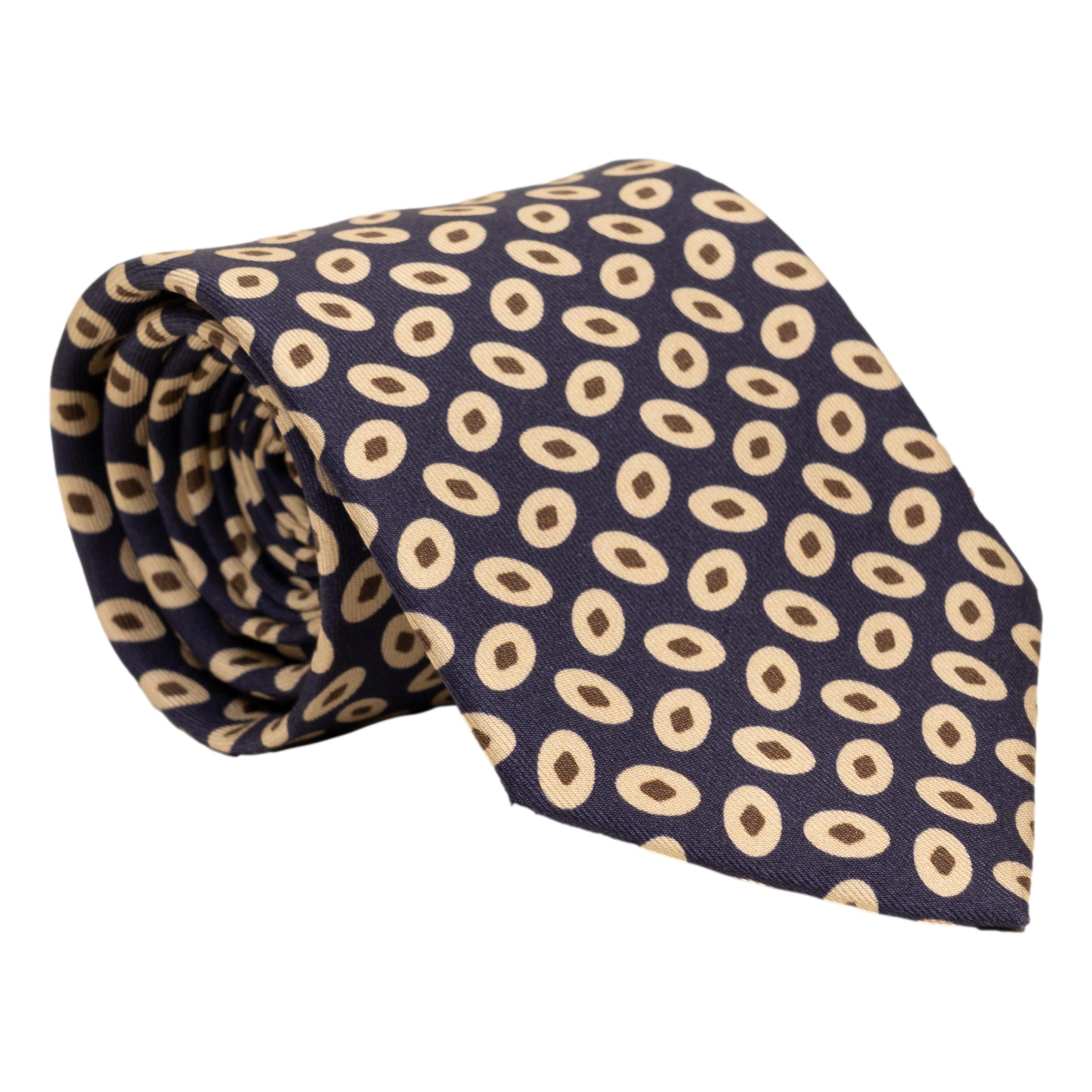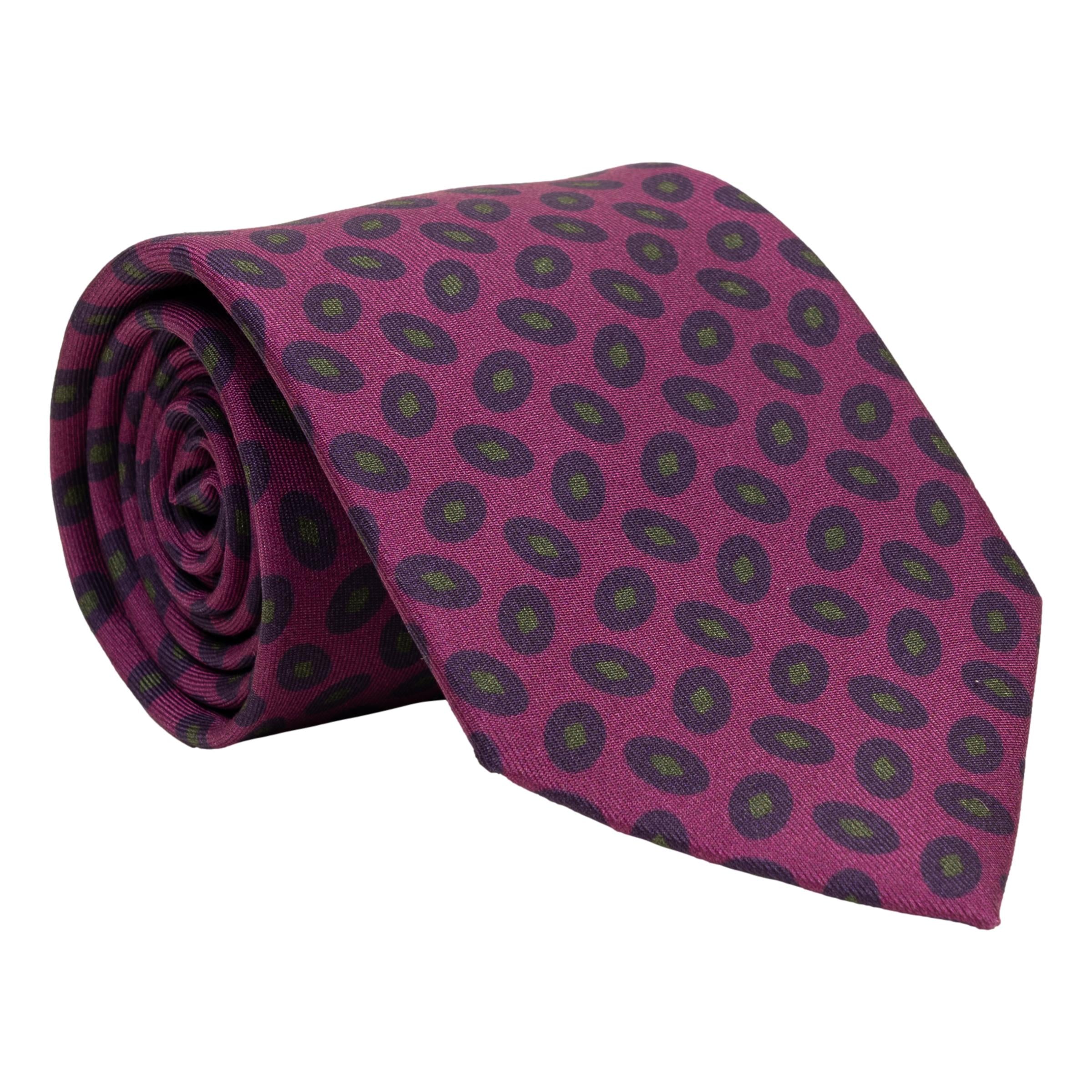 This 100% silk traditional tie is hand-finished and 8 cm in width, 149 cm in length. The color and design makes it versatile and complimentary to many wardrobe options. The perfect addition to every closet and tie collection. Made in England and dry clean only.
