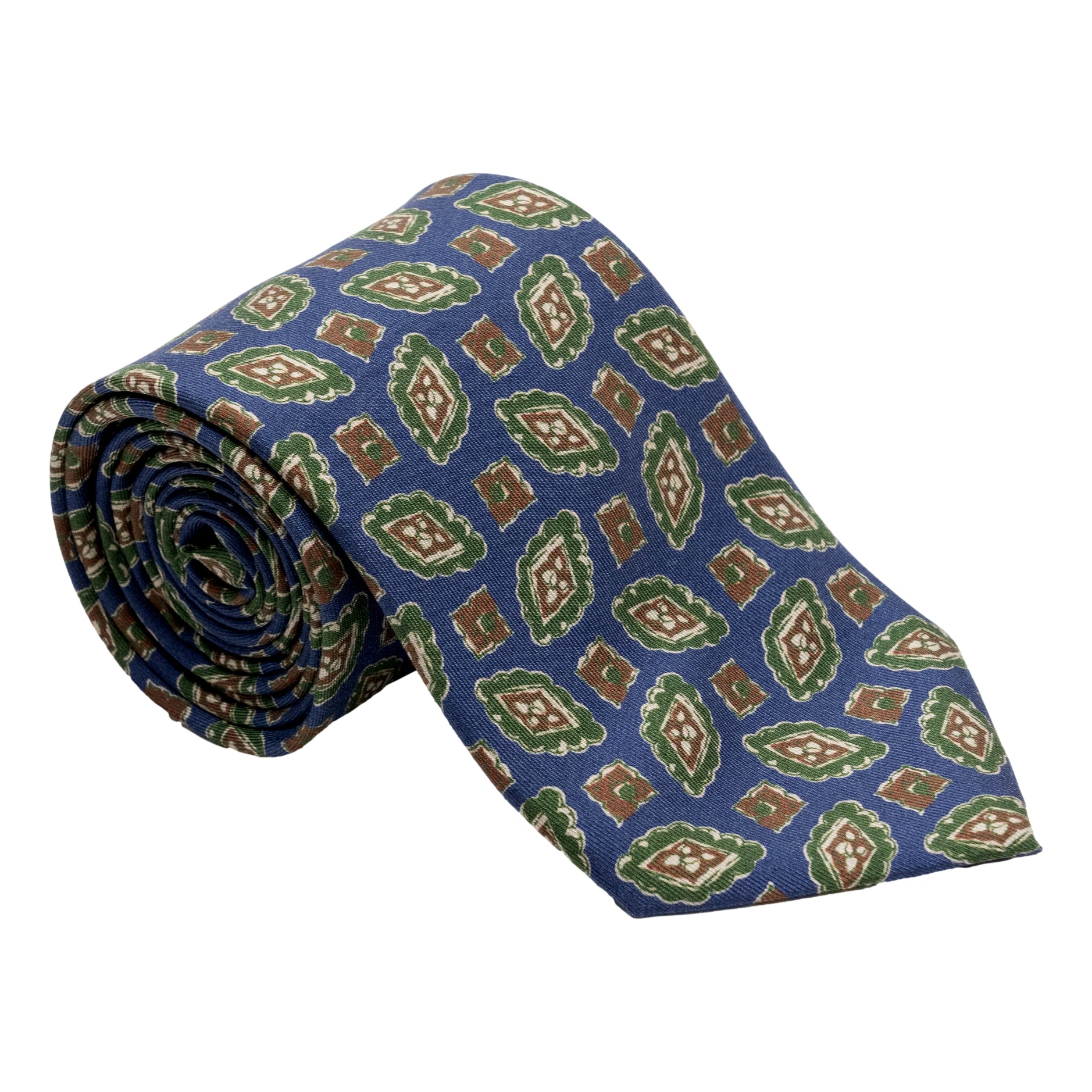 The tie is one of those accessories men love to wear to make them look distinctive. It allows them to express their personality: strong, decisive, refined, discreet, eclectic, outgoing or reserved. It is the pleasure of presenting gracefully. The tie shows your true character and tells its story through shapes, fabrics, designs and colors. And when the tie is tailored and handmade, such as this one, choosing it encompasses the taste for things that reflect a flavor of the time, rhythms that go back to a human dimension and bring out feelings and a sense of calm. It is the love for things that have heart and soul. 100% Silk and made for The Andover Shop.