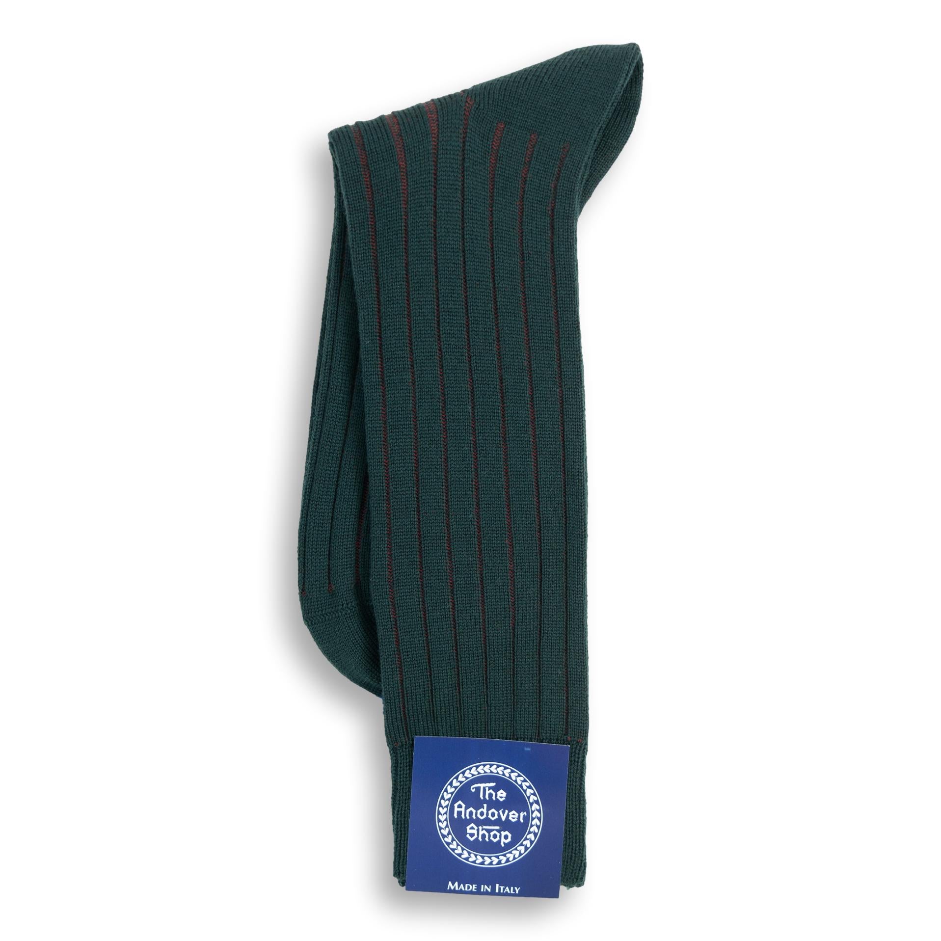This Mid-Calf Ribbed Shadow Stripe Wool Dress Socks can be worn on any occasion, casual or formal, and is a quintessential staple for any gentleman who enjoys spicing up his wardrobe. The subtle shadow stripes makes an appearance in each rib and adds a twist to a classic. Made from fine wool in Italy for The Andover Shop. One size fits most.