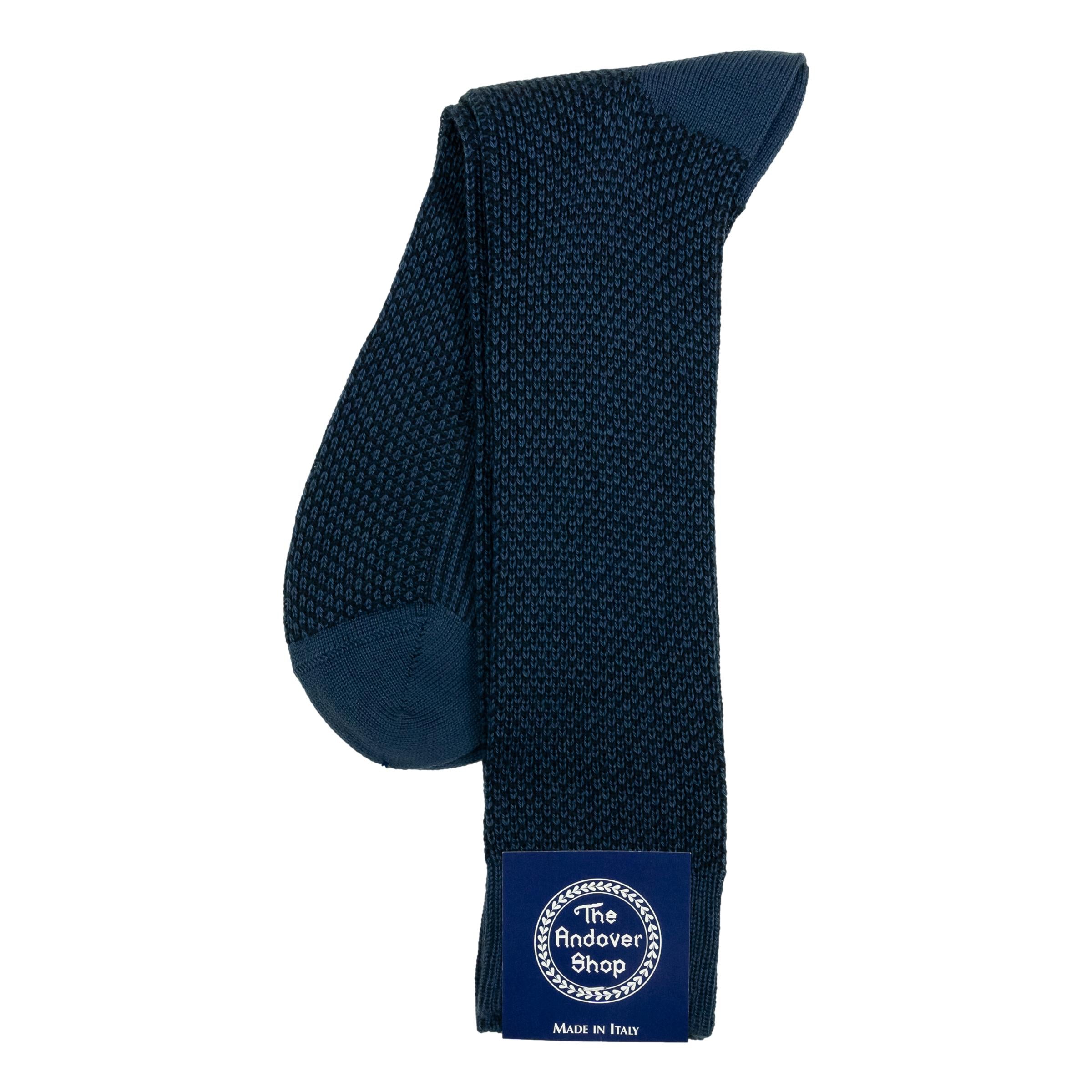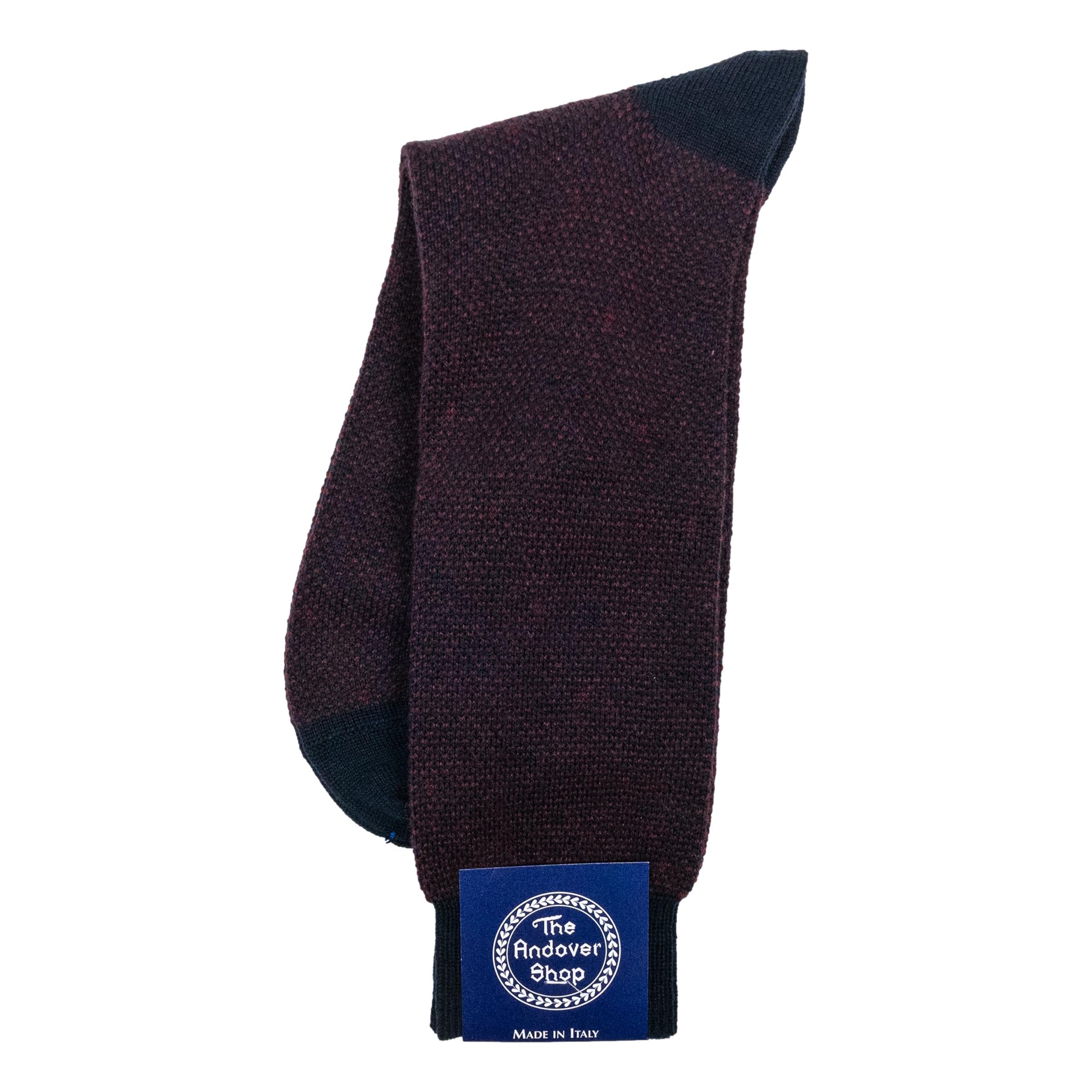 This Mid-Calf Alternating Toe and Heel Wool Dress Sock can be worn on any occasion, casual or formal, and is a quintessential staple for any gentleman who enjoys spicing up his wardrobe. Made from fine wool in Italy for The Andover Shop. One size fits most.