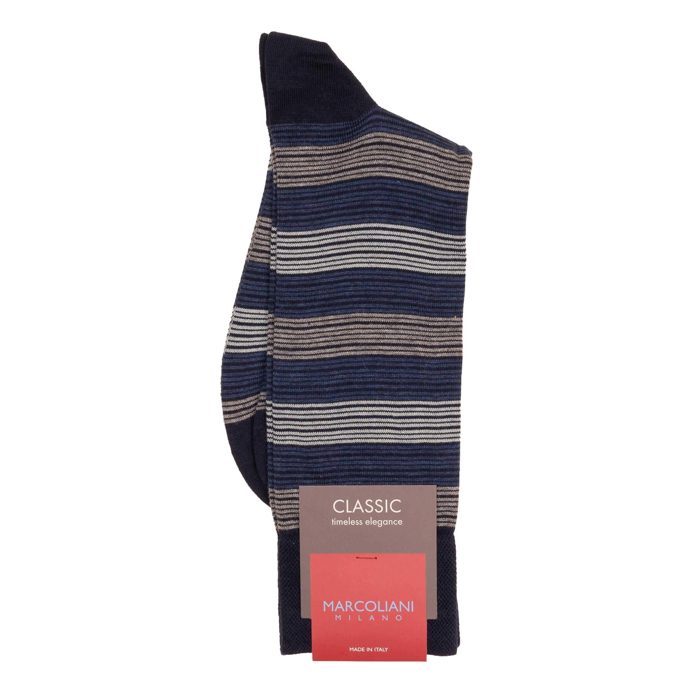 Pima Cotton Scala Stripe Mid-Calf Dress Socks