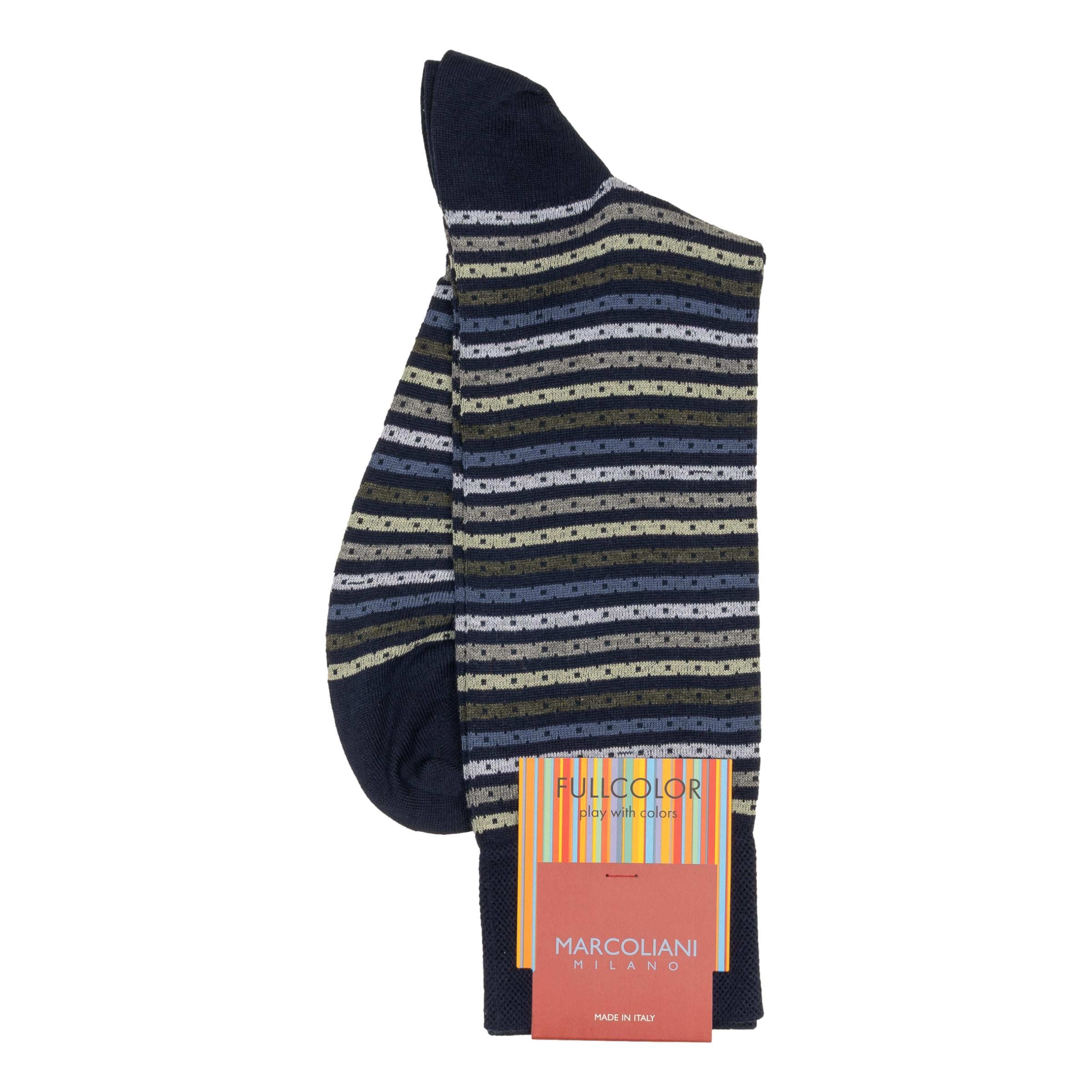 Pima Cotton Stripes and Pin Dot Mid-Calf Dress Socks