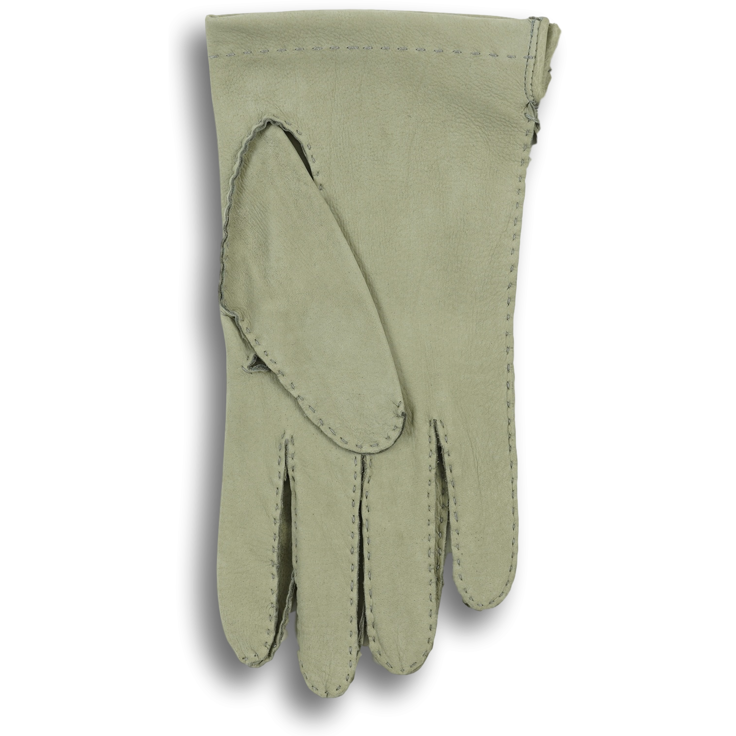 This glove is handsewn from soft calfskin leather, is unlined, and features a side vent. This beautiful glove is fully hand-cut and Hand-sewn and features strikingly detailed stitching. A simple and elegant vent at the side of the wrist makes putting the gloves on and off that much easier. The leather is prepared and cut by hand in order to insure the best fit, finish and comfort in wear. This glove is made with “Quirks” — Small diamond shaped pieces of leather sewn at the base of the fingers, where they are attached to the hand of the glove to improve the fit. Handsewn for The Andover Shop in England. Men's.