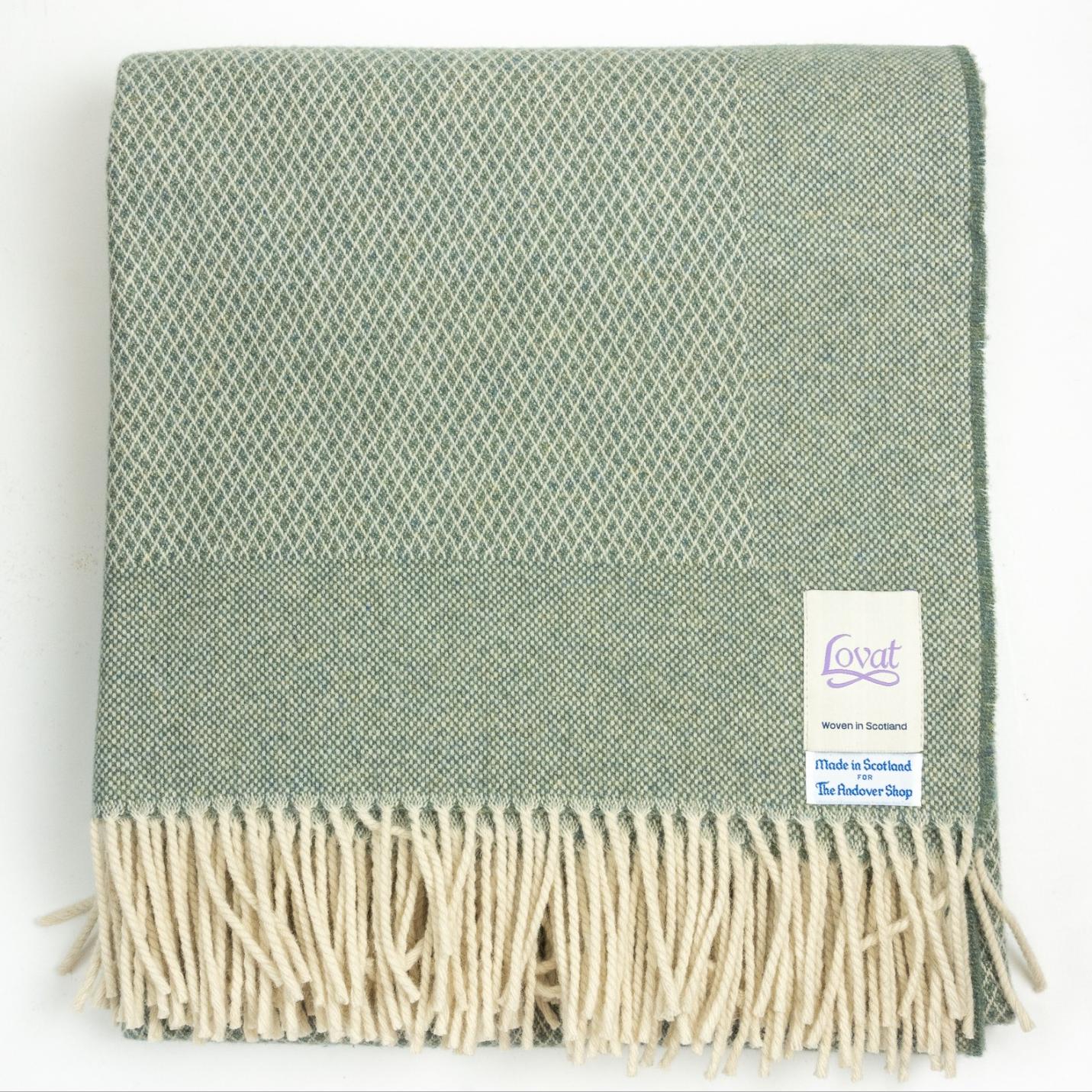 Presented in the pastel colour palette of the Scottish Seascape, the diamond weave which gives this throw its character is inspired by a centuries old archive held at Lovat Mill.