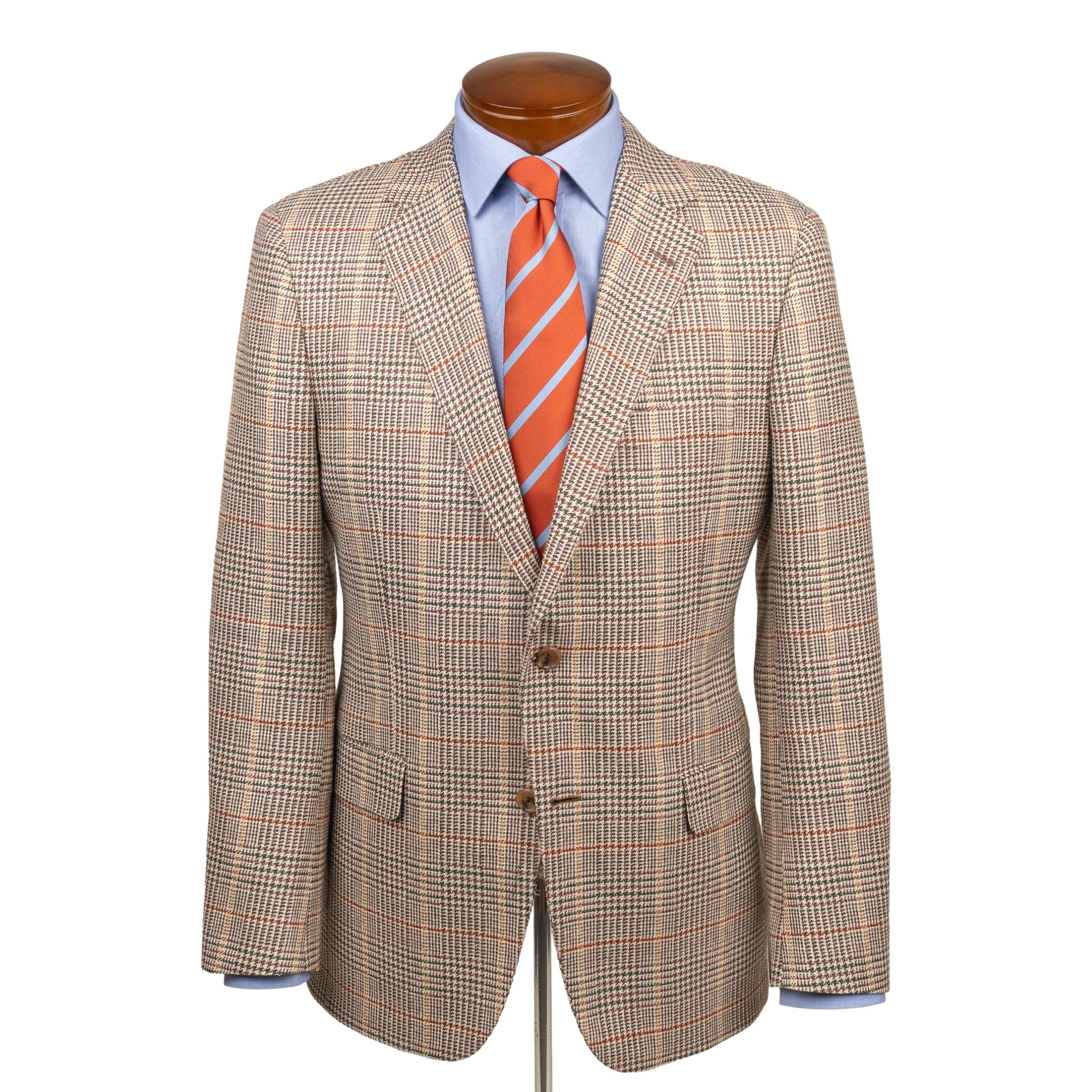 Multicolor Houndstooth with Windowpane Wool, Silk, and Linen Sport Coat