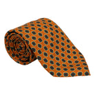 Orange with Green and Maroon Motif Silk Tie