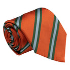 Rust with Green and Light Blue Repp Stripe Silk Tie