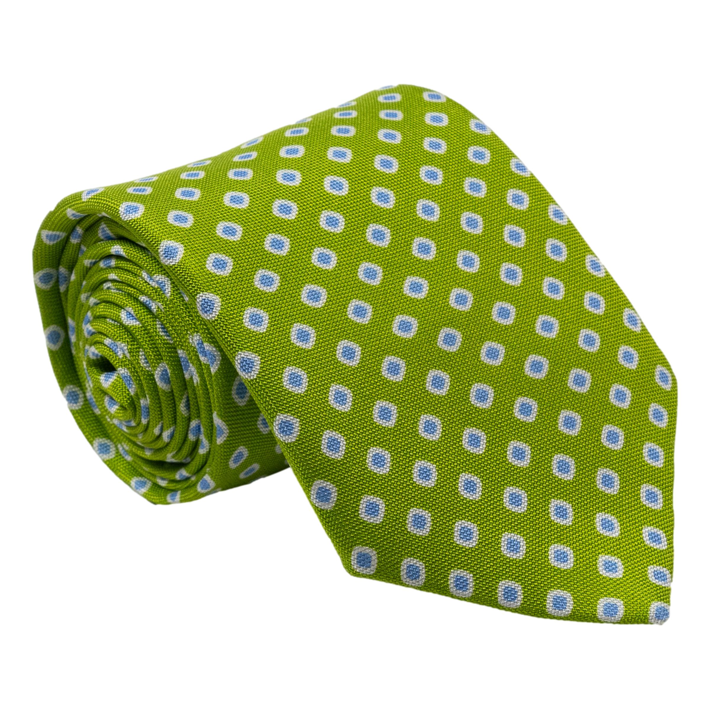 This 100% silk traditional tie is hand-finished and 8 cm in width, 149 cm in length. The color and design makes it versatile and complimentary to many wardrobe options. The perfect addition to every closet and tie collection. Made in England and dry clean only.