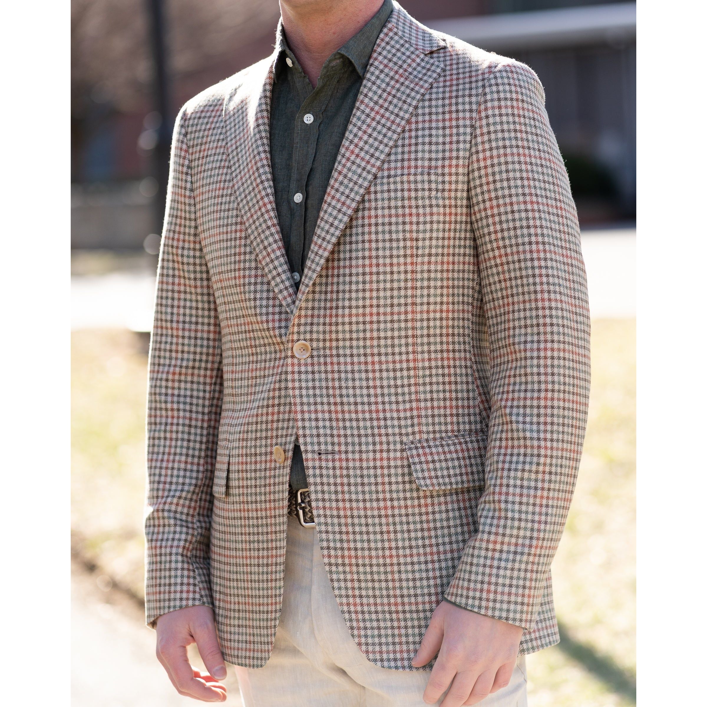 Introducing our Red Clay, Sage, and Bark Silk Sport Coat– this expertly crafted piece features a light construction, ensuring both style and comfort, perfect for Spring and Summer events. With a fully-lined interior, two-button closure, patch pockets, and side vents, this sport coat seamlessly blends sophistication with a touch of relaxed elegance for a versatile and refined look. Made in Canada for The Andover Shop.
