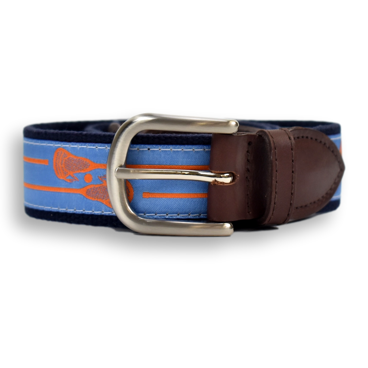 This lacrosse needlepoint belt, as elegant as it is casual and fun, is the perfect accessory to help you stand apart from the crowd. This hand-stitched traditional belt is 1.25"" in width and is finished with full grain, vegetable tanned Italian leather and a solid brass buckle.