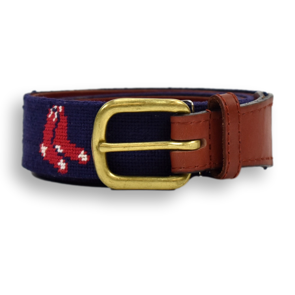 This Red Sox needlepoint belt, as elegant as it is casual and fun, is the perfect accessory to help you stand apart from the crowd. This hand-stitched traditional belt is 1.25"" in width and is finished with full grain, vegetable tanned Italian leather and a solid brass buckle.