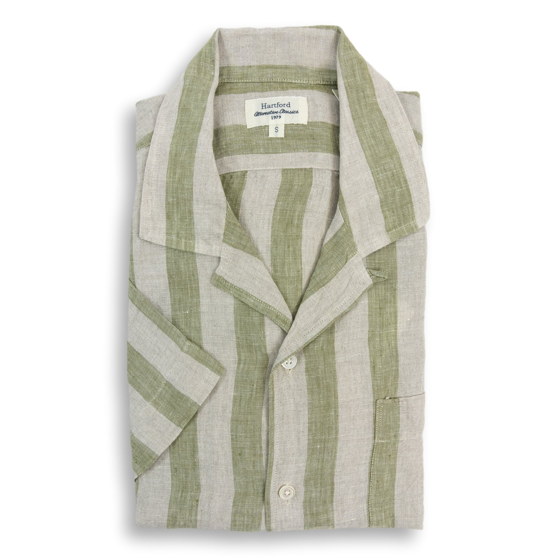Light and comfortable short sleeve Linen Palm Shirt with chest pocket. Light, breathable, and extremely easy and comfortable to wear. Made in Morocco. Our 6'1" model wears a size M.