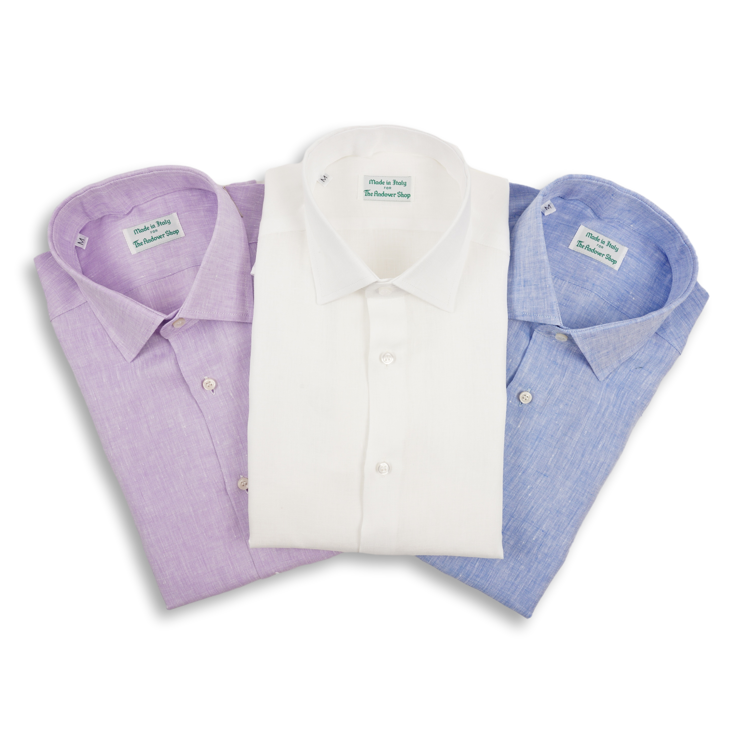 This relaxed fit sport shirt is perfect for a daywear look on a warm day. The shirt is a straight cut and hemmed perfectly for a stylish look. The linen fabric is light, breathable and gentle on the skin. These shirts are machine washable and made to last for many summertime activities. The classic design and vibrant colors add a trendy touch to any casual look. Made in Italy for The Andover Shop. Shirt runs slightly large. 100% Linen.
