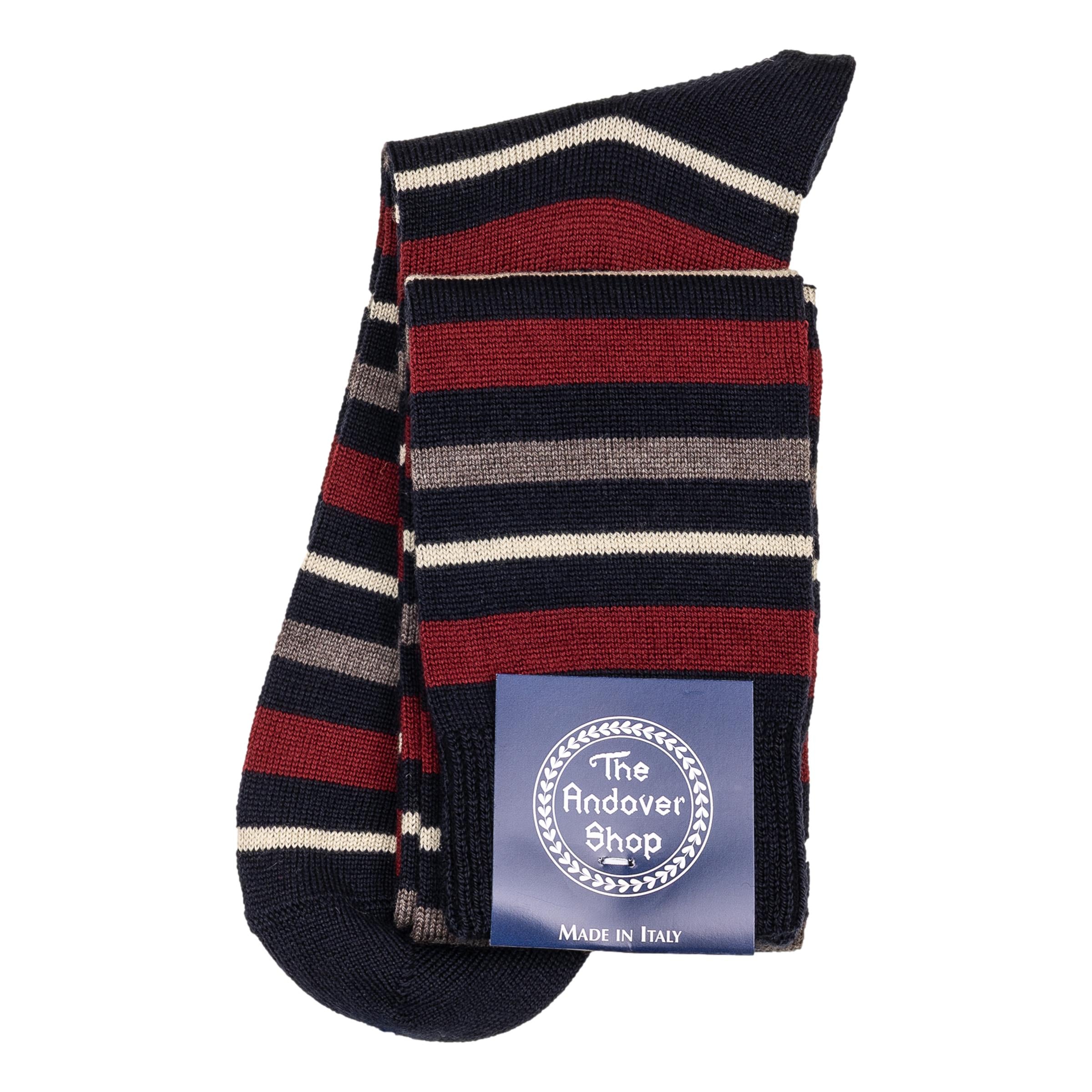 Over-the-Calf Wool Multi-Stripe Dress Sock