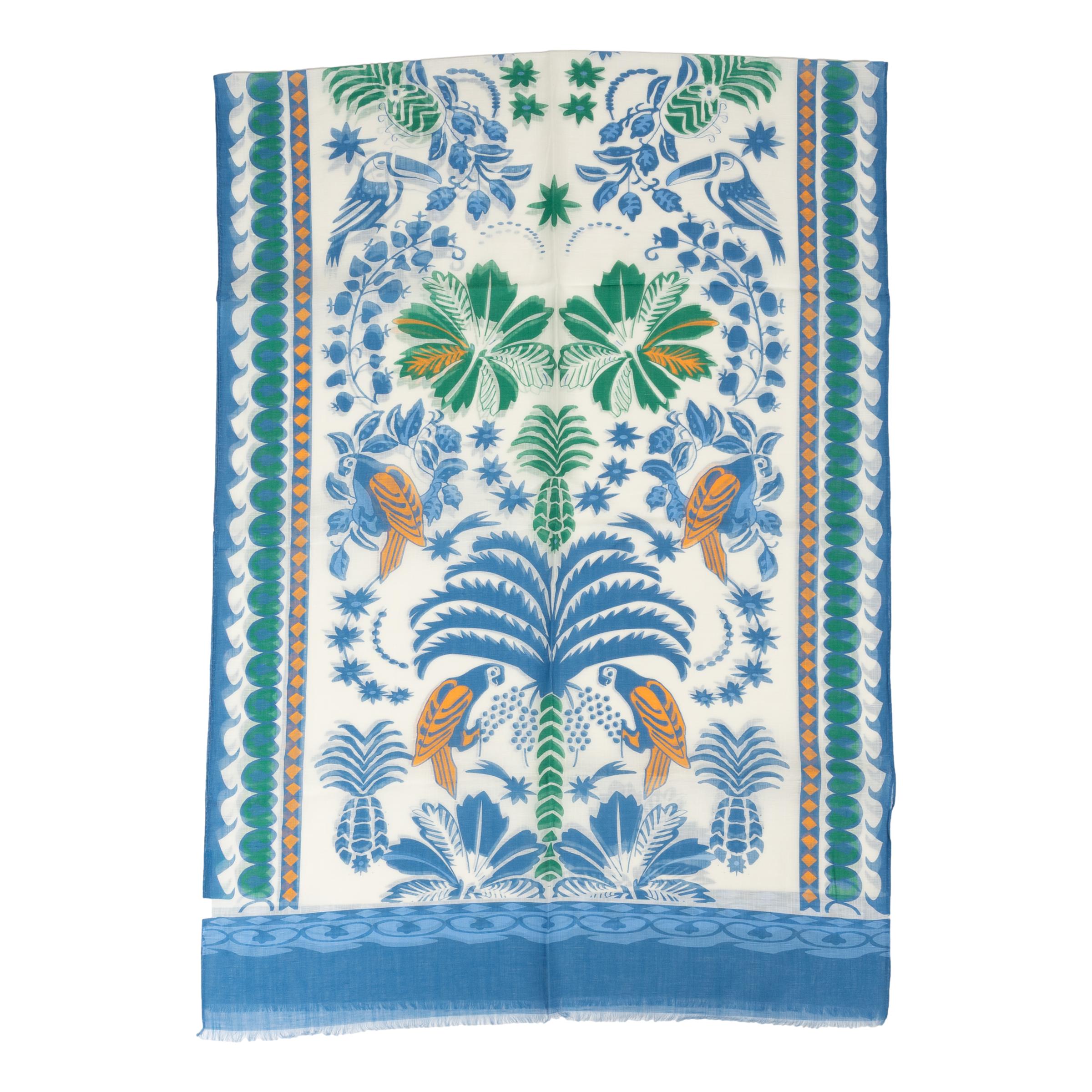 Parrot and Pineapple Cotton and Linen Blend Scarf