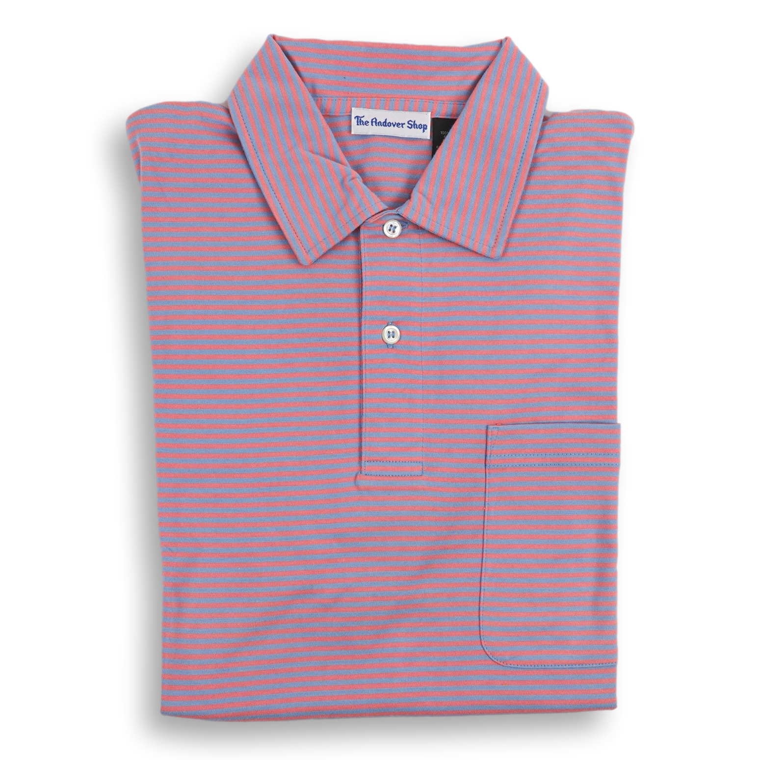 100% Pima cotton made for The Andover Shop in Peru. This polo features a self collar with pocket. Similar to our classic Striped Polo Jersey with a fun yet sophisticated knit contrast collar, our Striped Jersey Polo with a 'self' collar is another closet staple. The light fabric will keep you cool and looking sharp on the hottest of days.