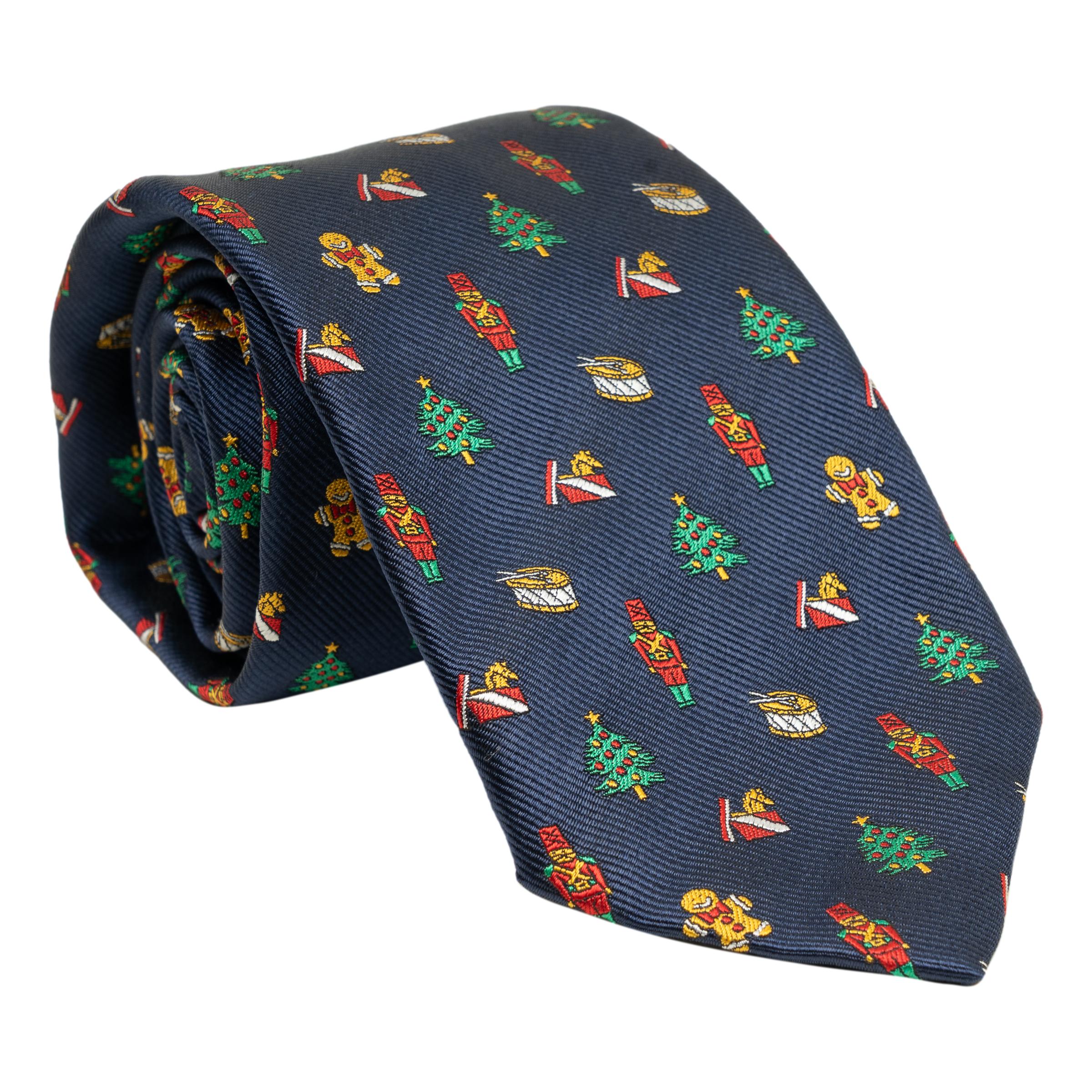 Navy with Red, Gold, and Green Stripe Irish Poplin Tie