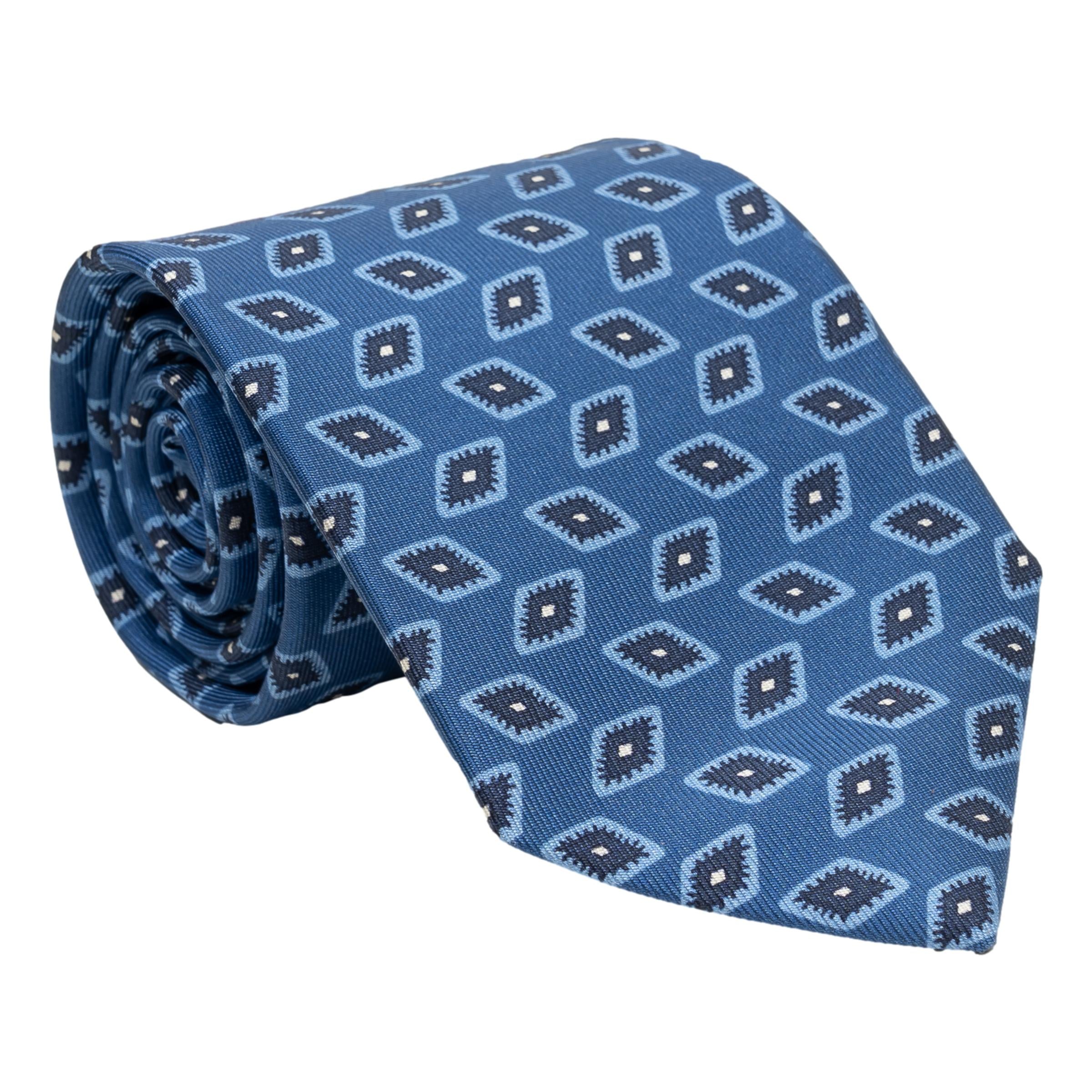 Light Blue with Shades of Blue Diamond Pattern Silk Tie