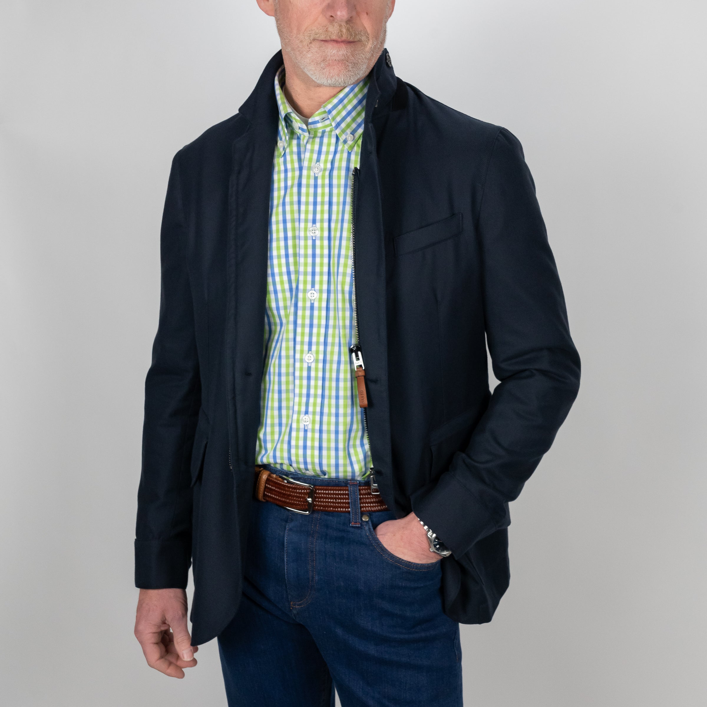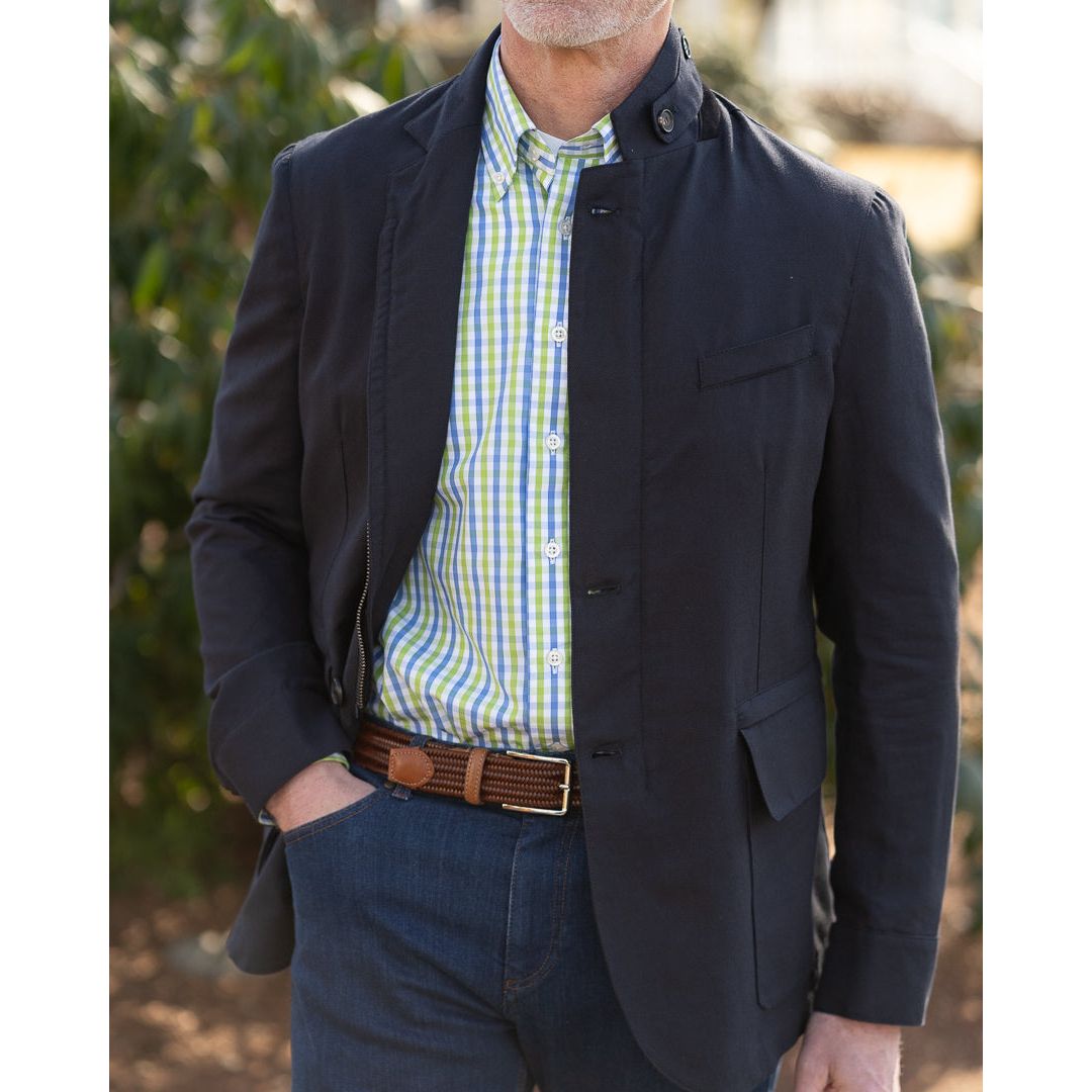 Discover casual elegance with our Amarone Cotton, Cashmere, Silk Travel Blazer, expertly crafted in Italy for The Andover Shop. This full zip and button closure jacket features two hip pockets and interior pocketing, adding both style and functionality to your ensemble. It promises comfort and breathability, making it a versatile and timeless piece for any wardrobe.