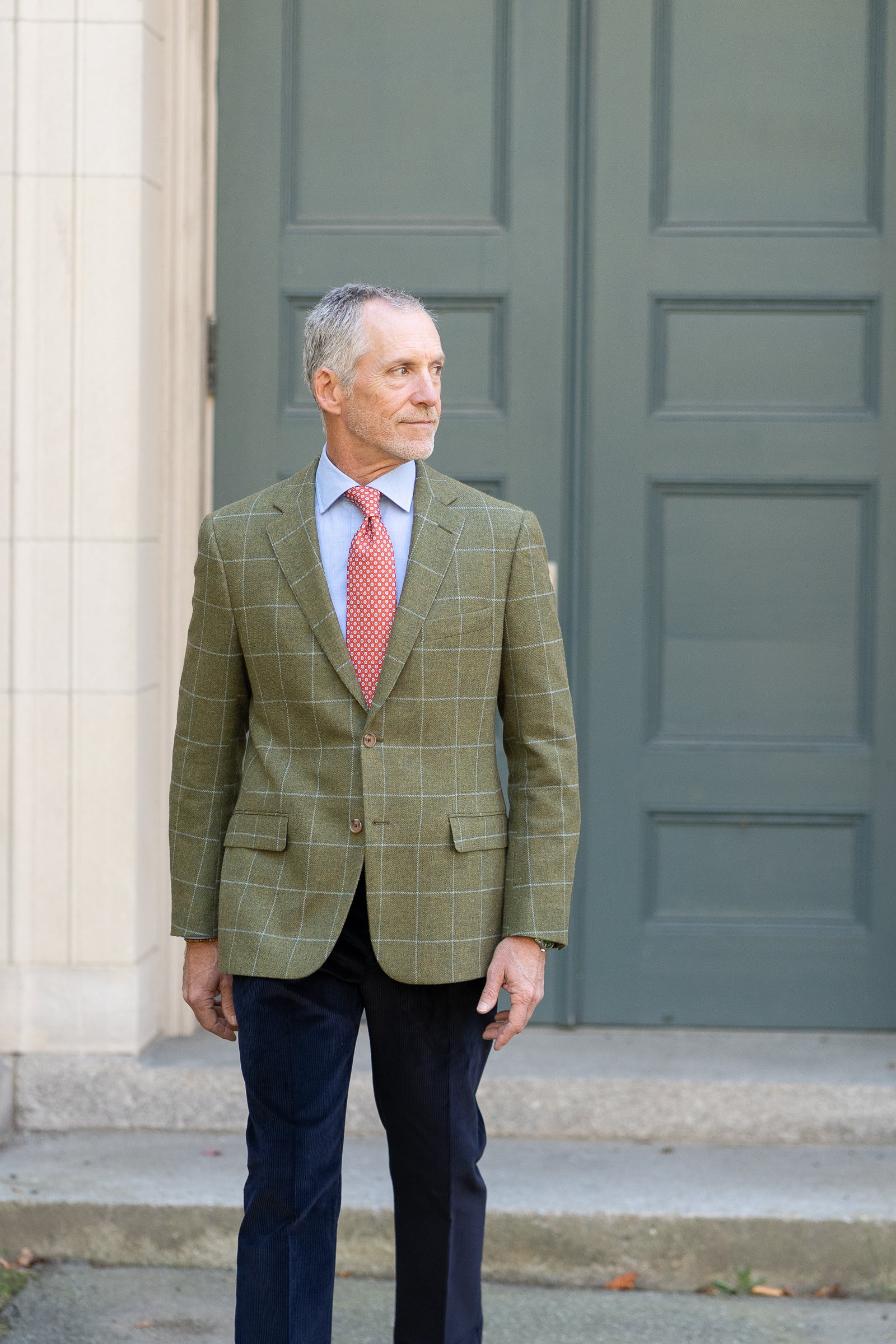 This 50% silk and 50% cotton traditional tie is hand-finished and 8 cm in width, 149 cm in length. The color and design makes it versatile and complimentary to many wardrobe options. The perfect addition to every closet and tie collection. Made in England and dry clean only.