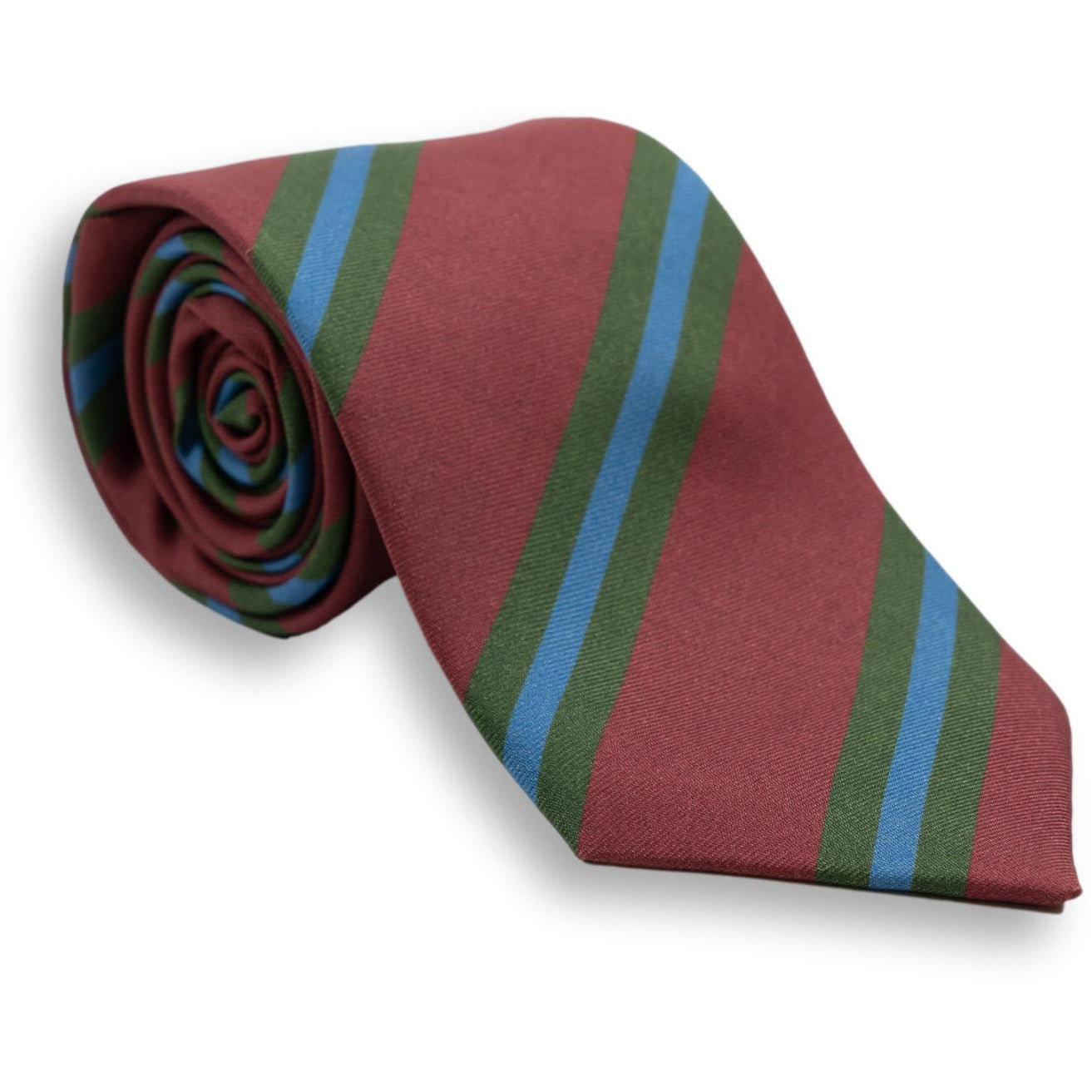 Brick with Olive and Light Blue Repp Stripe Silk Tie