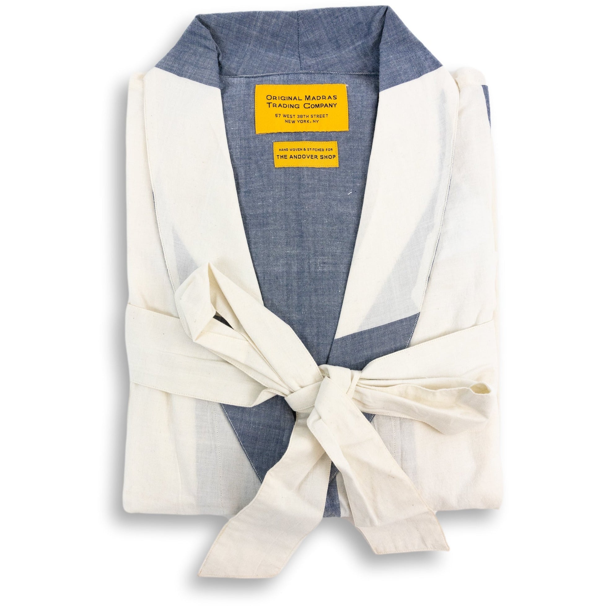 This cloth was hand woven by skilled craftspeople in Madras. No two lengths are identical. Single weaver handloom cloth has variations that are characteristic and not defects. Please appreciate any minor irregularities as unique perfect imperfections! These robes are handmade for The Andover Shop in India. The home of madras!