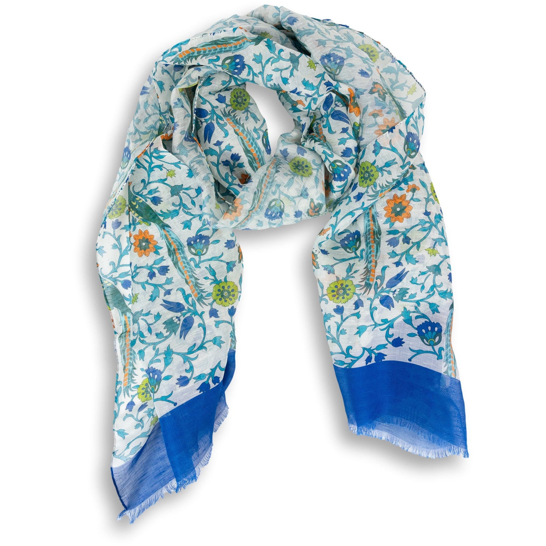 Exotic Bird and Floral Pattern Linen and Silk Blend Scarf