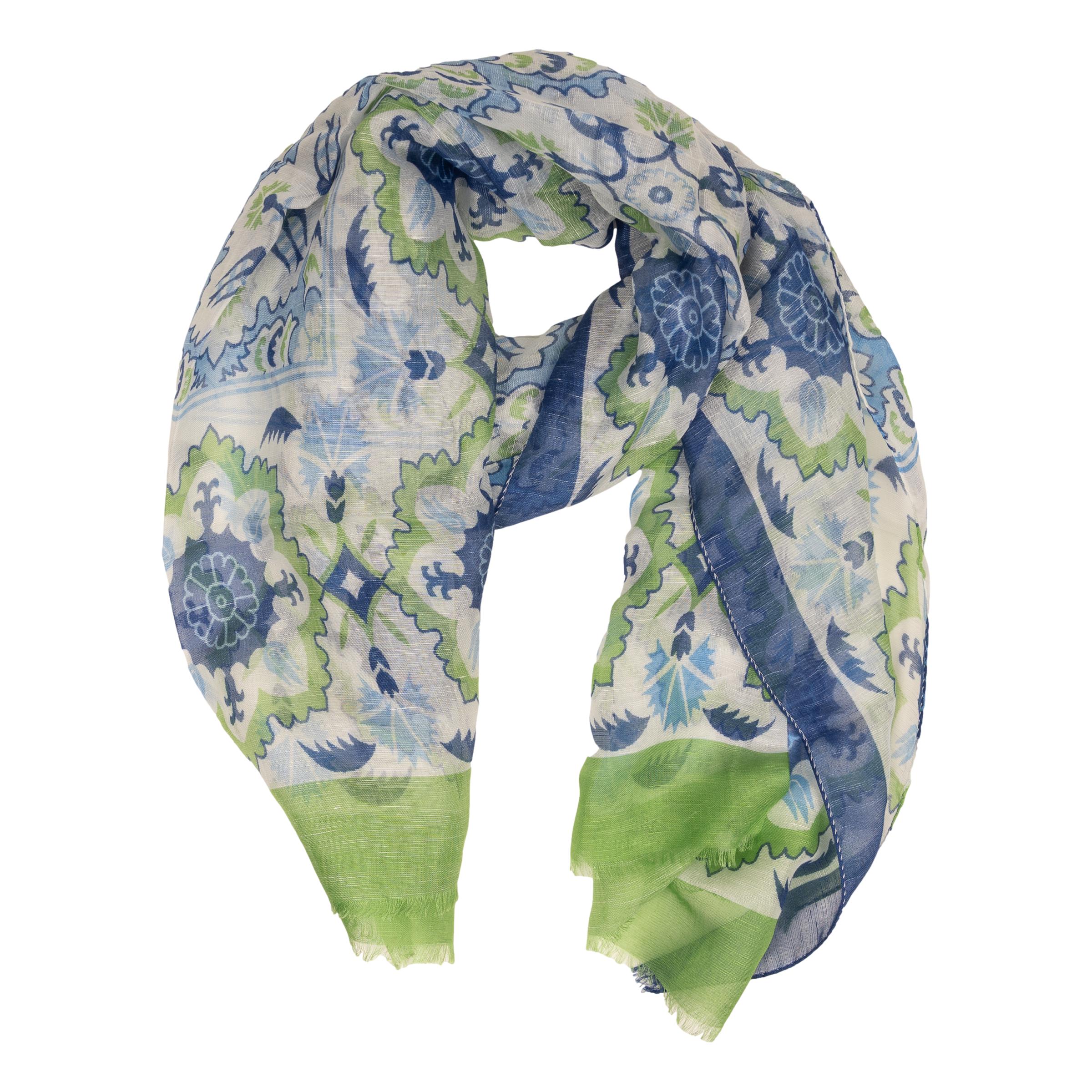 Made in Italy for The Andover Shop, this summer scarf is crafted from a blend of 70% linen and 30% silk, creating a luxurious yet lightweight fabric perfect for warmer weather. The linen provides a natural texture and breathability, while the silk adds a subtle sheen and softness. The scarf features a generous size, allowing for versatile styling options, and is adorned with a classic design that exudes elegance and sophistication. Whether draped over the shoulders or tied around the neck, this summer scarf is the perfect accessory to elevate any outfit. 70cmx200cm.