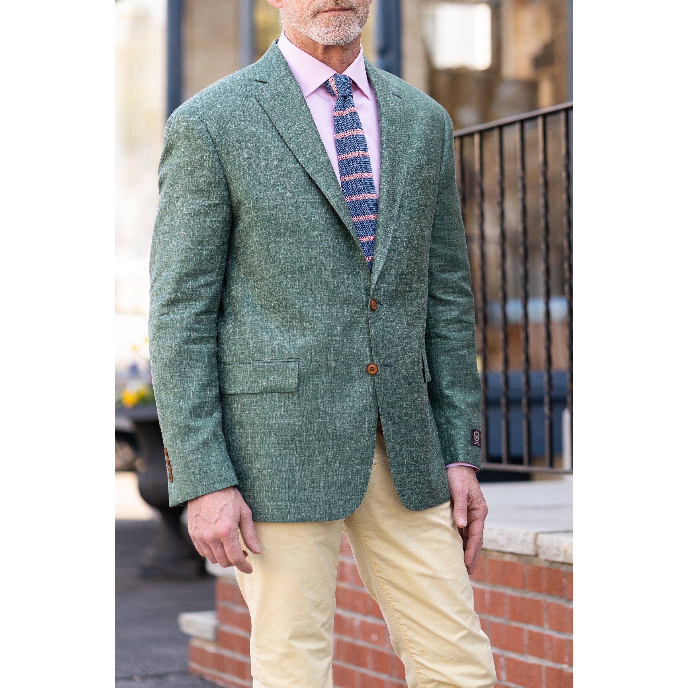 The wool, silk, and linen blend fabric of this sport coat is lightweight, breathable, and soft to the touch, making it comfortable to wear for extended periods. It is perfect for cooler weather, providing warmth and insulation without adding bulk.