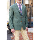 The sport coat features a two-button closure and a notch lapel, providing a sleek and refined silhouette. It is 3/4 lined with a bemberg fabric ensuring a comfortable fit. The jacket also features several pockets, including a chest pocket and two flap pockets on the front, providing ample space to store small essentials like a phone or wallet.