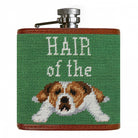 The Smathers and Branson 6oz stainless steel needlepoint flask is trimmed with full grain leather and is permanently fixed around the flask.