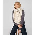 A 100% Merino wool natural coloured scarf knitted with tradition Aran stitches of honeycomb, lattice and cables to keep you warm. Natural is the original light cream colour for Arans, commonly known as 'báinín' or 'white'. 23 cm x 180 cm. Match it with the knitted Aran Hat! Unisex.