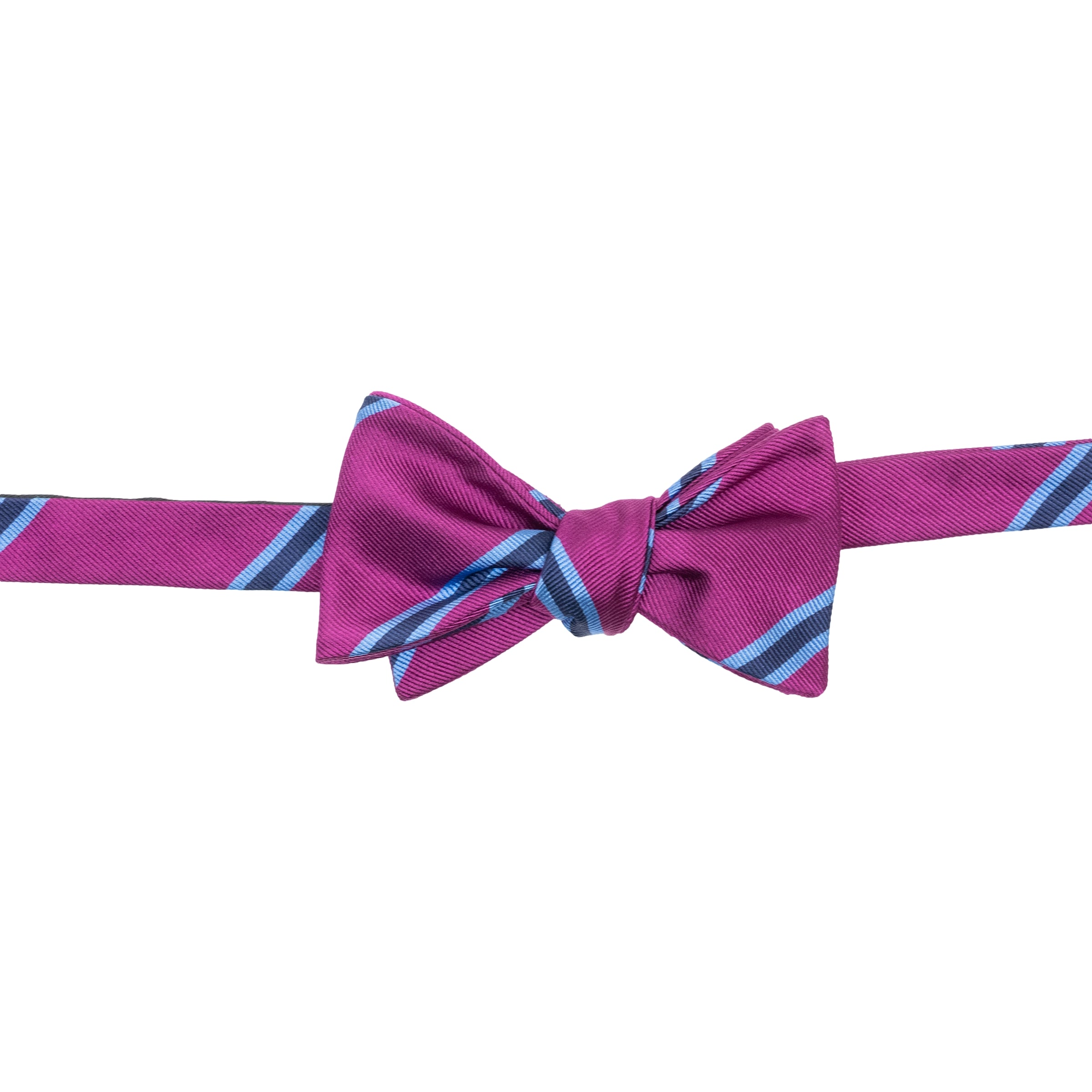 Magenta with Navy and Light Blue Repp Stripe Silk Bow Tie