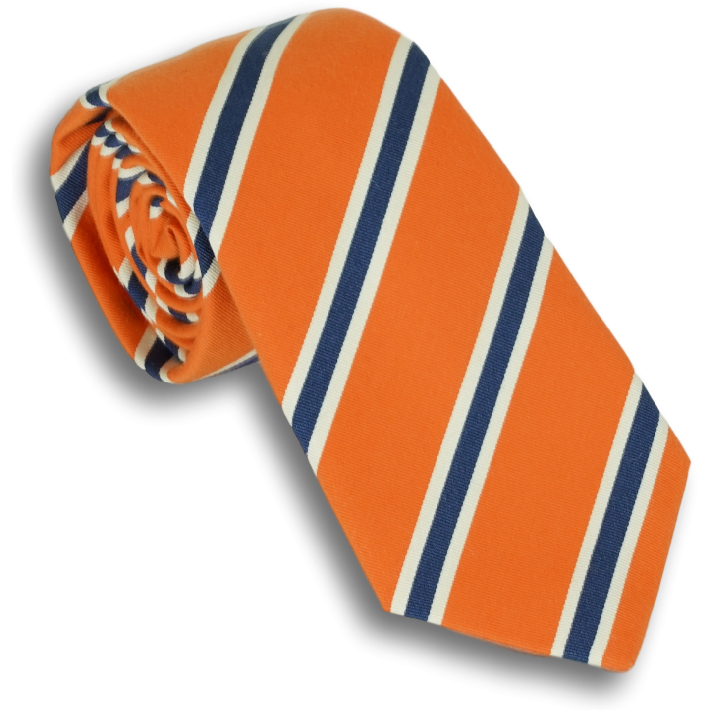 Orange and White/Navy Mogador Stripe Silk and Cotton Tie