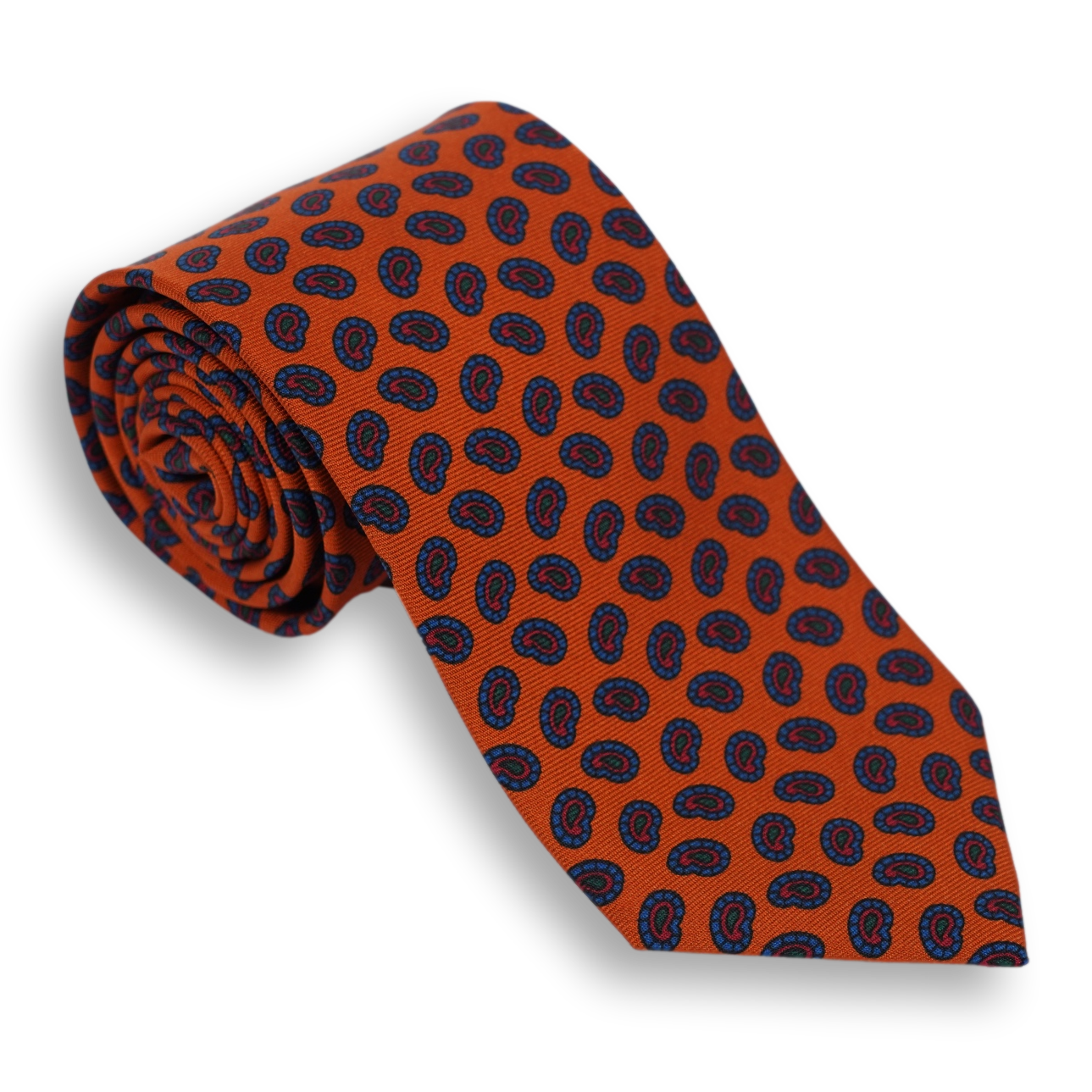Orange with Multicolored Paisley Motif Silk Tie
