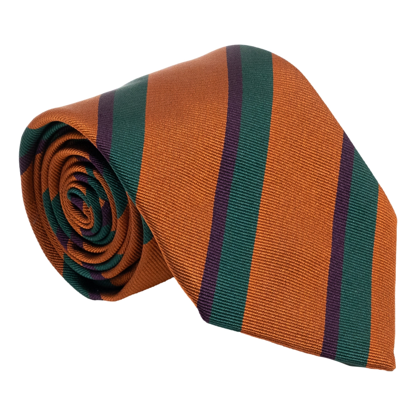 Rust with Maroon and Forest Green Repp Stripe Silk Tie