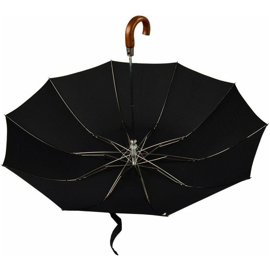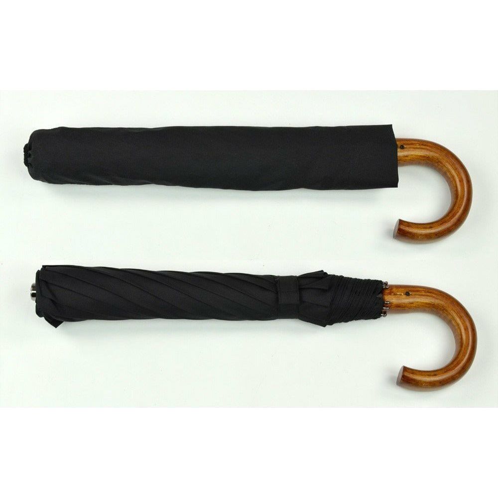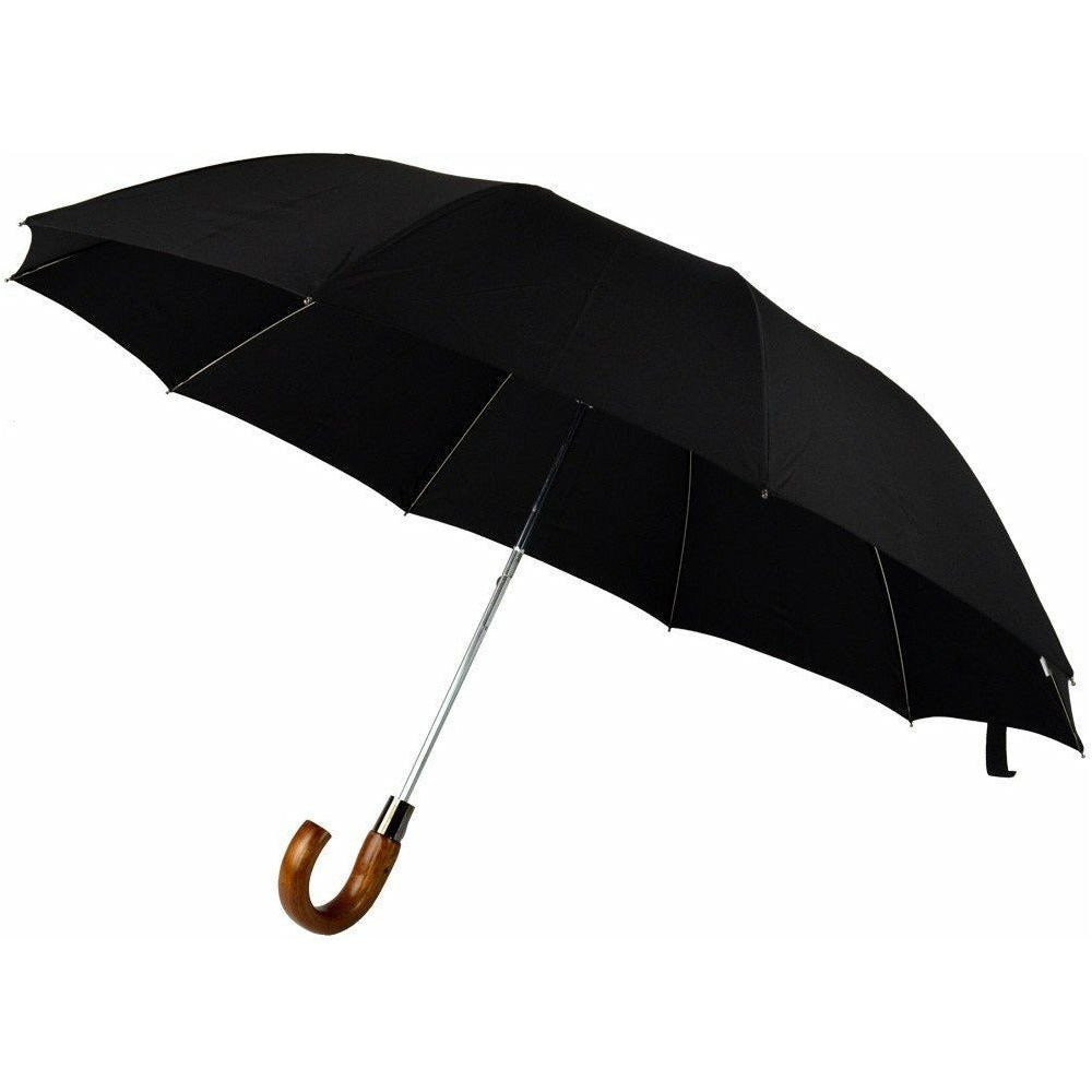 Let it rain with this full size 10 rib, for extra strength, telescopic umbrella with an automatic frame and a Brown Softwood Crook Handle. The auto release button is fitted into the handle. The length of this umbrella is approximately 18" from handle to end and the cover when opened is approximately 40" in diameter. The cover and outside case are made from 100% Polyester.
